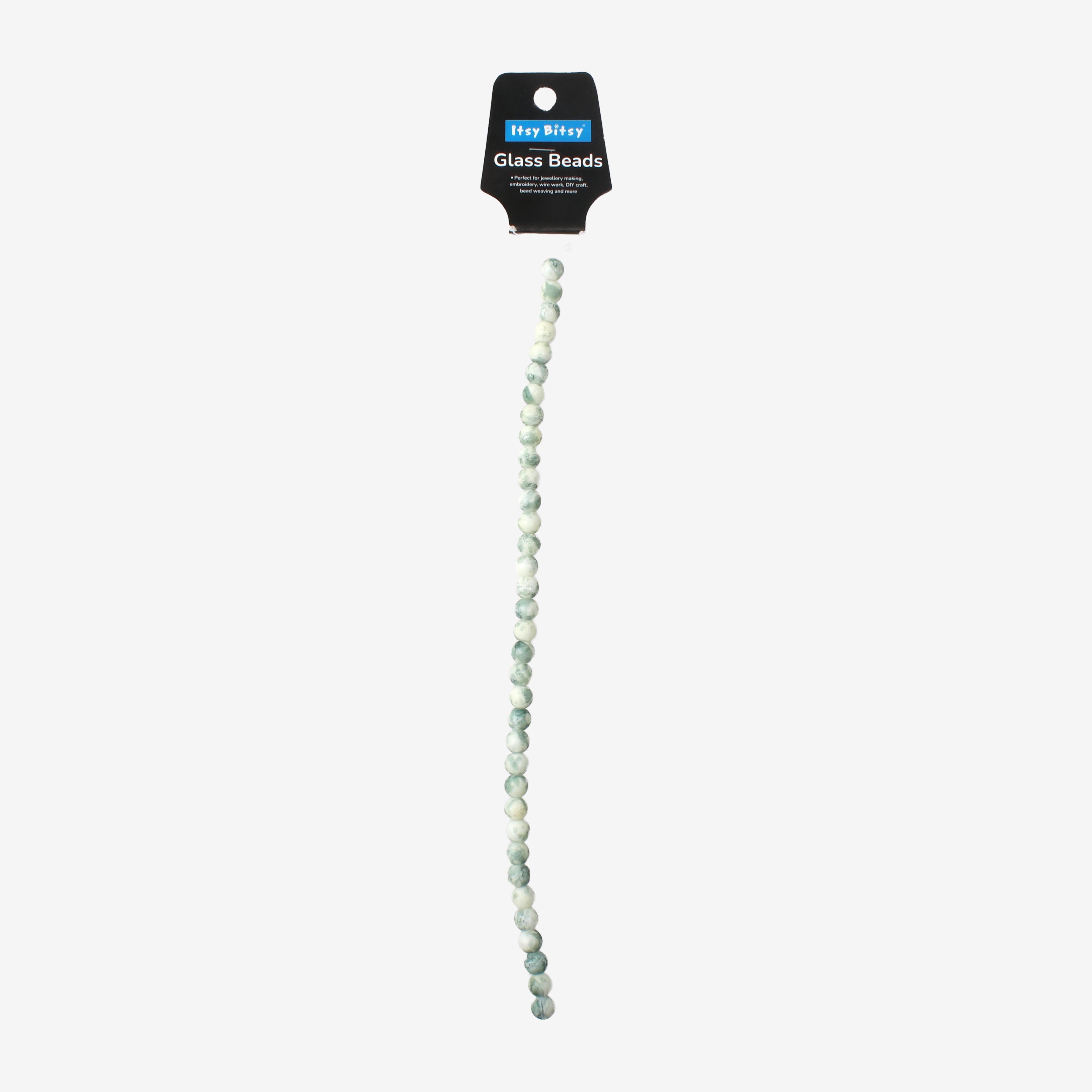 Glass Bead Round Dual Tone White & Green 8mm 35beads 1string