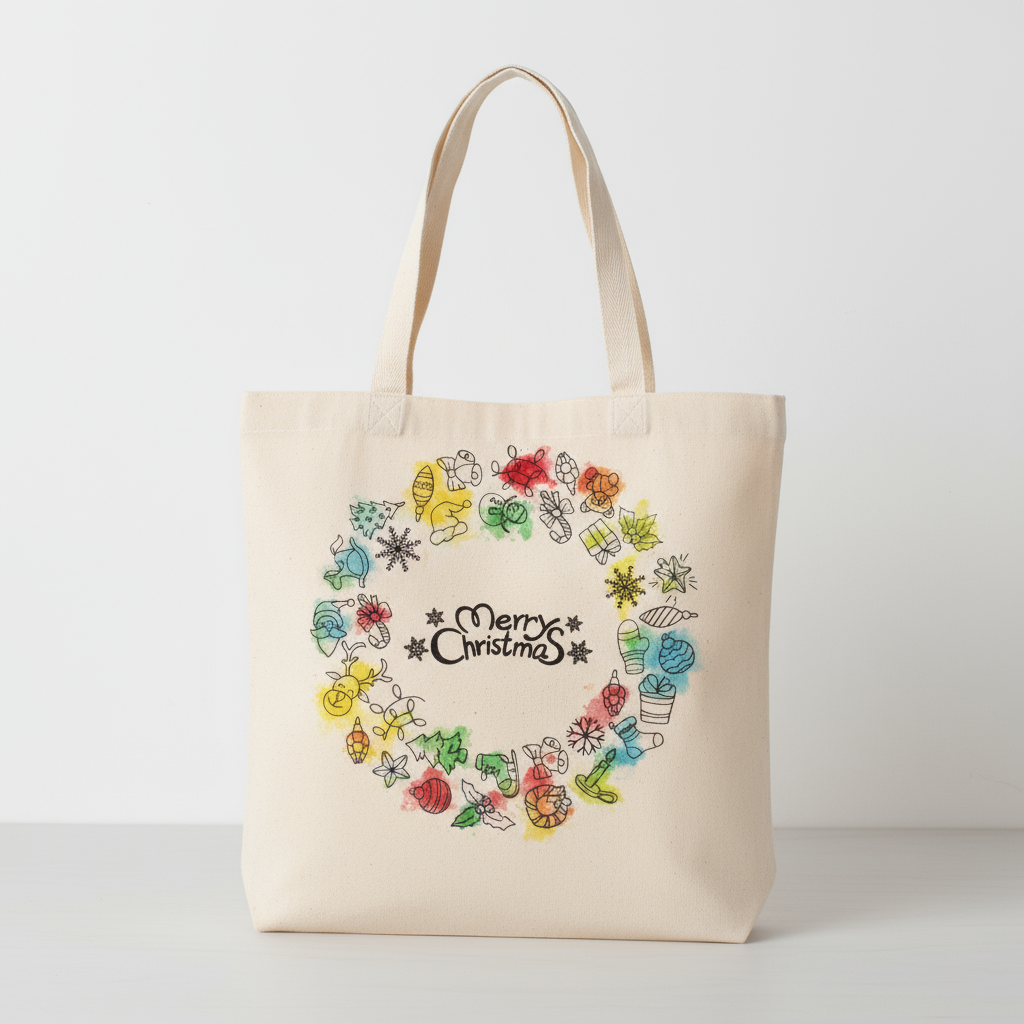 Christmas Pre-Printed Colour Your Own Tote Bag - Celebrate Christmas Approx 12.75 x 12.75inch 1bag