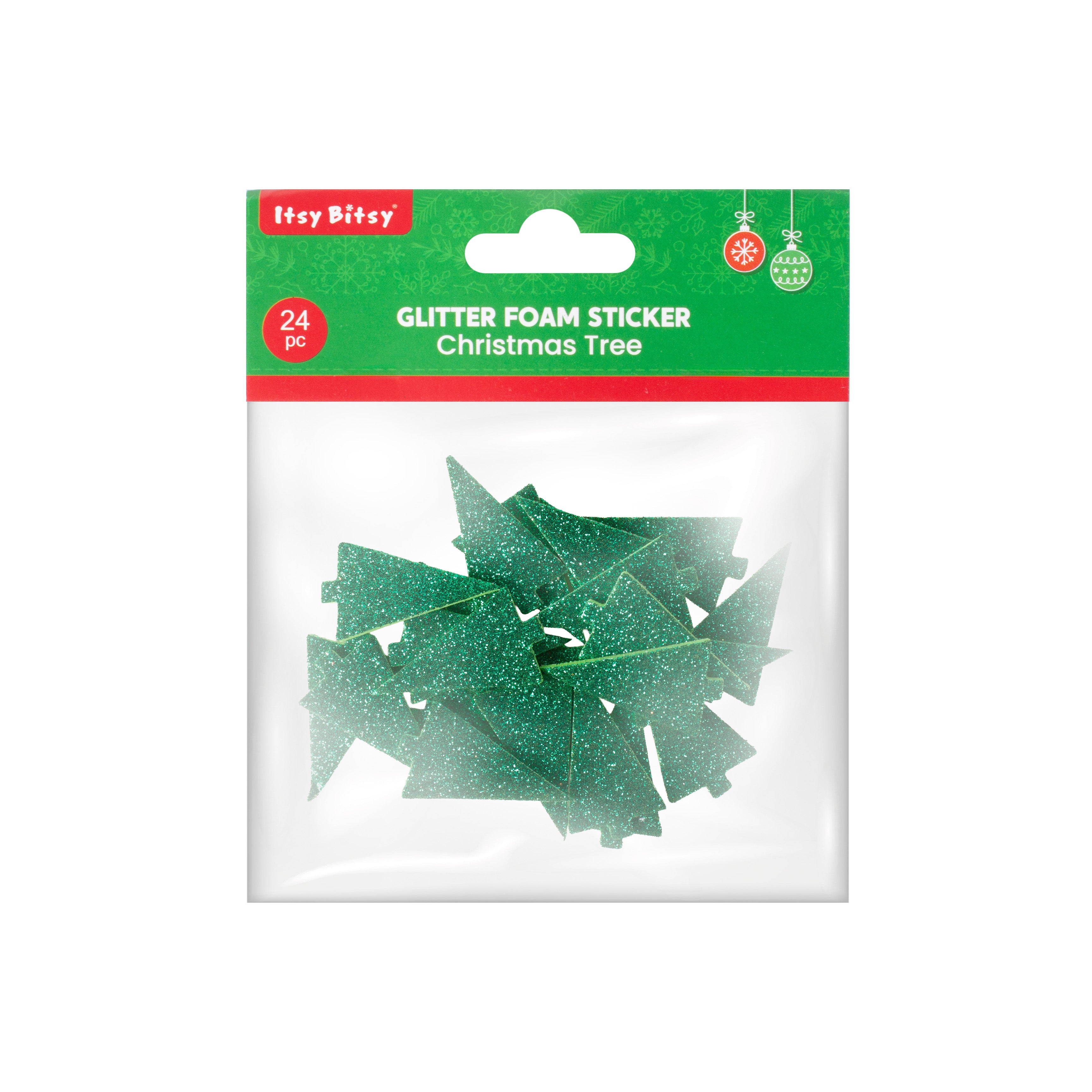 Christmas Self Adhesive Sparkle Fun Foam Shape Pine Green 24pc