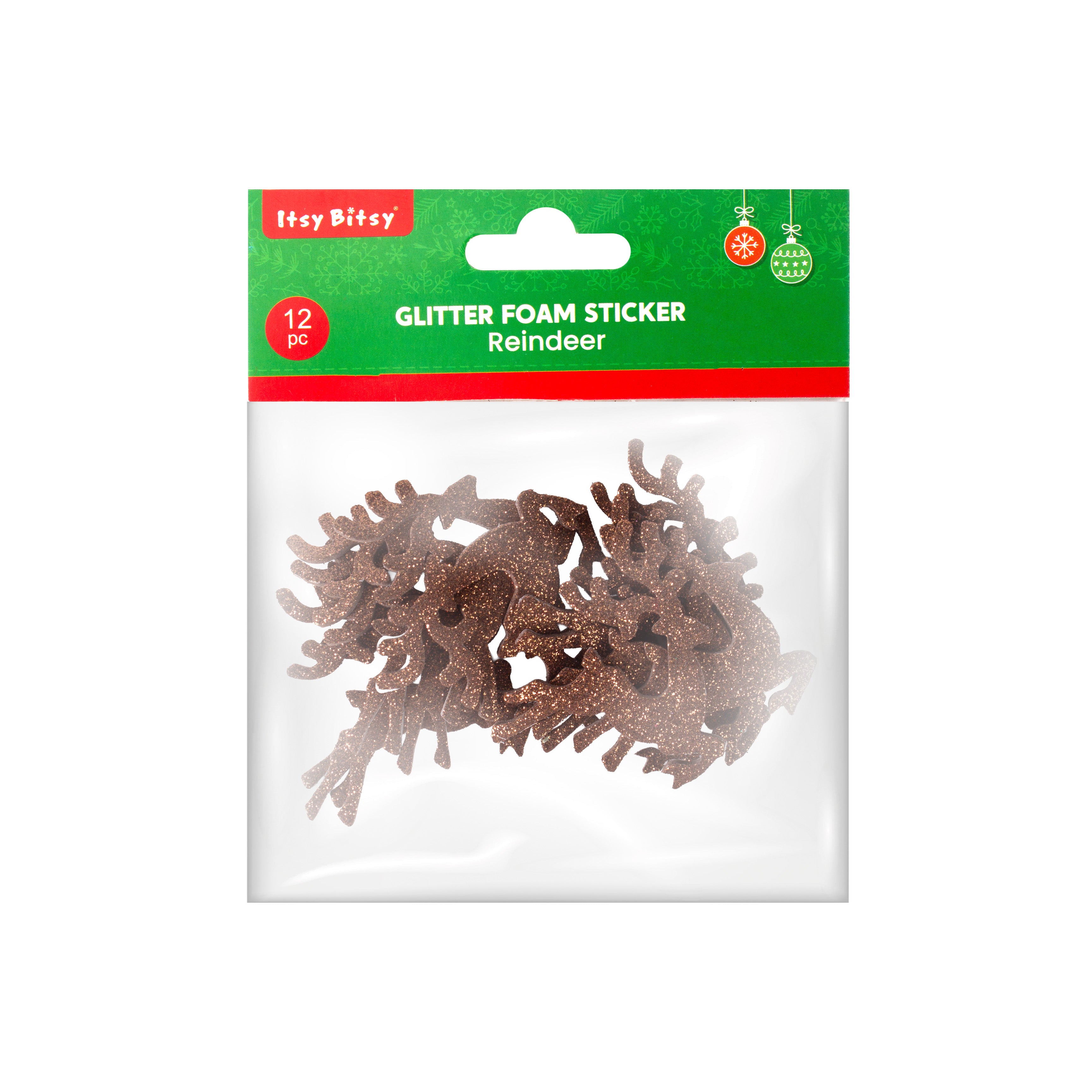 Christmas Self Adhesive Sparkle Fun Foam Shape Reindeer Bronze Shimmer 12pc