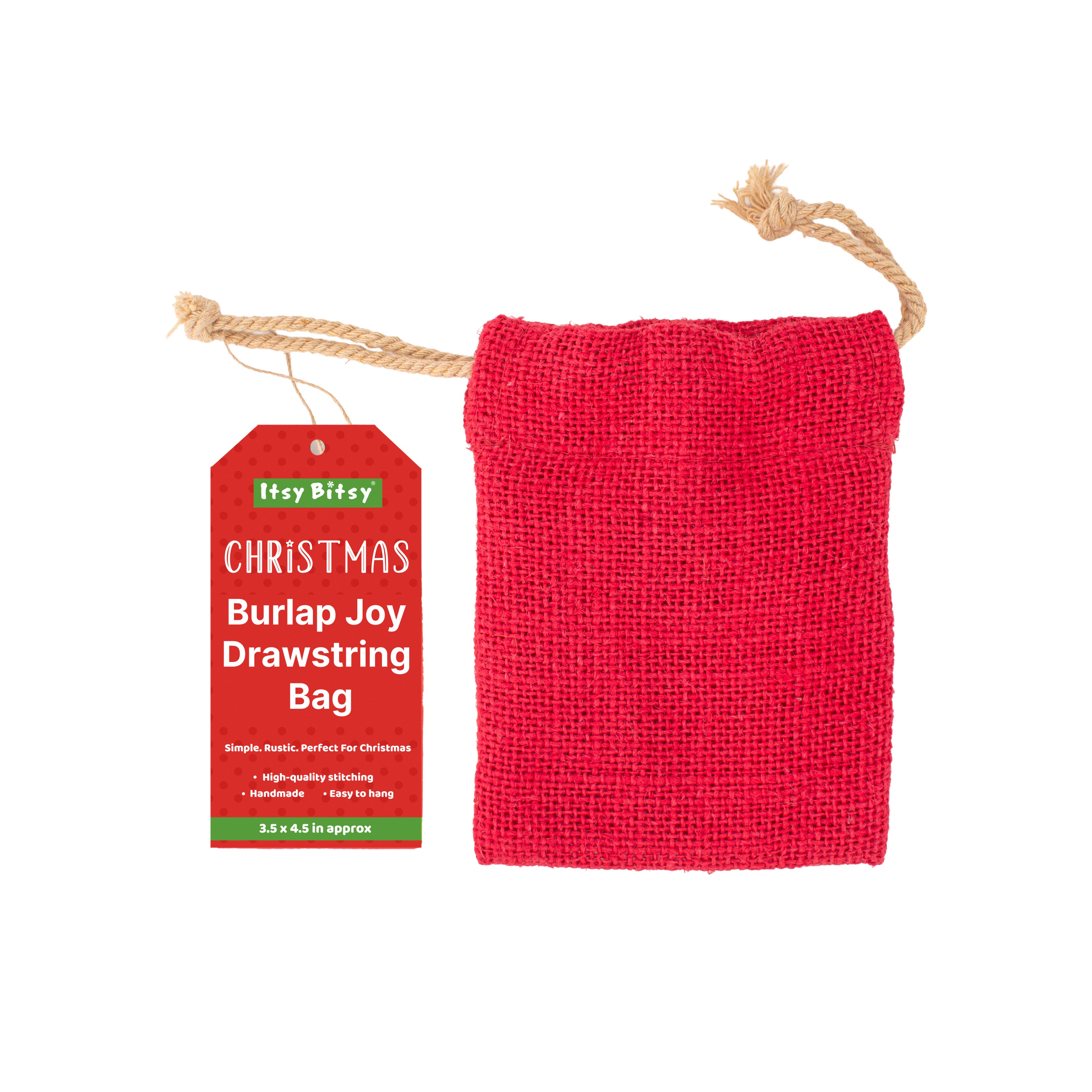 Burlap Joy Drawstring Bag Red Approx 3.5 x 4.5inch 1pc