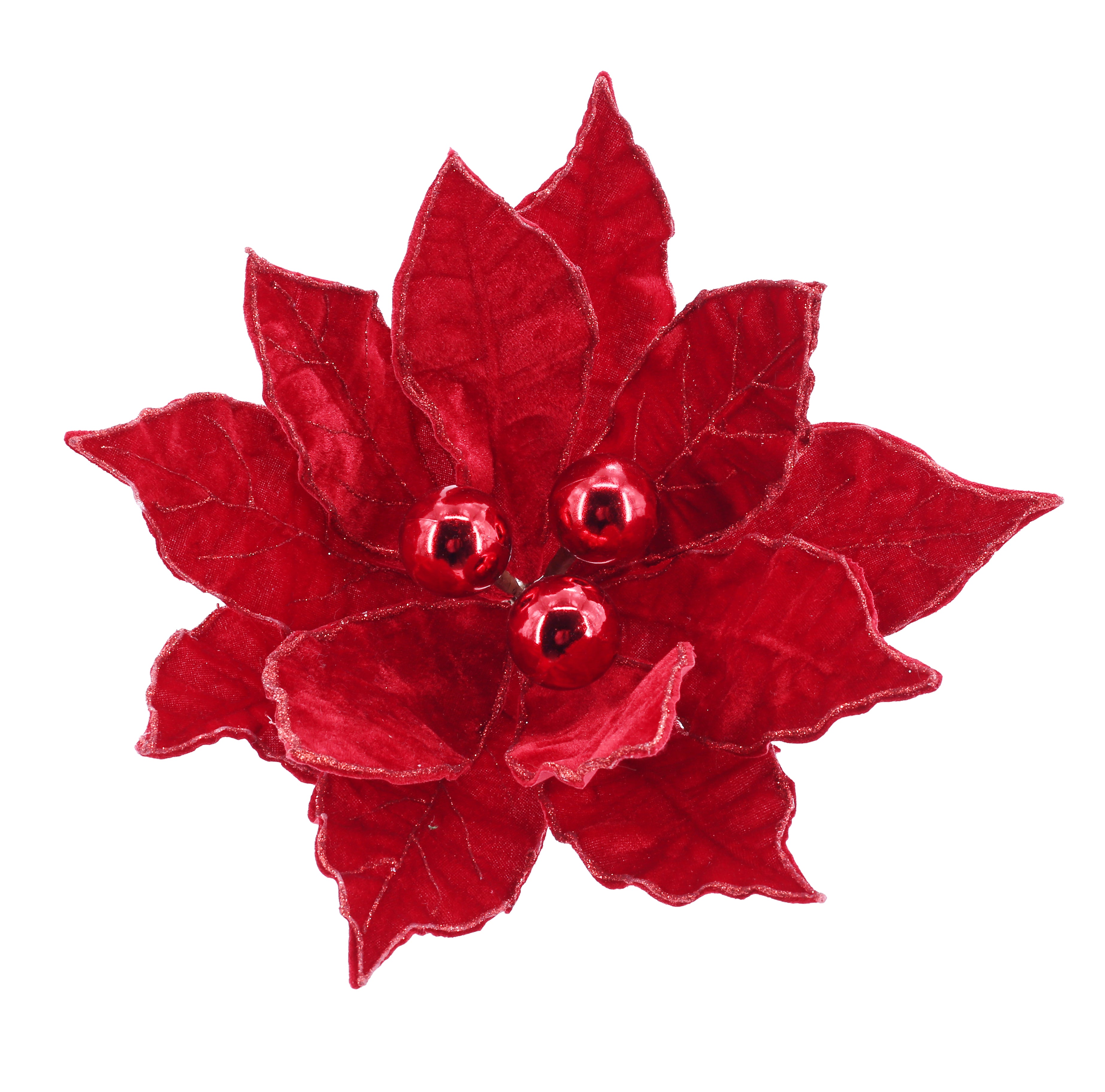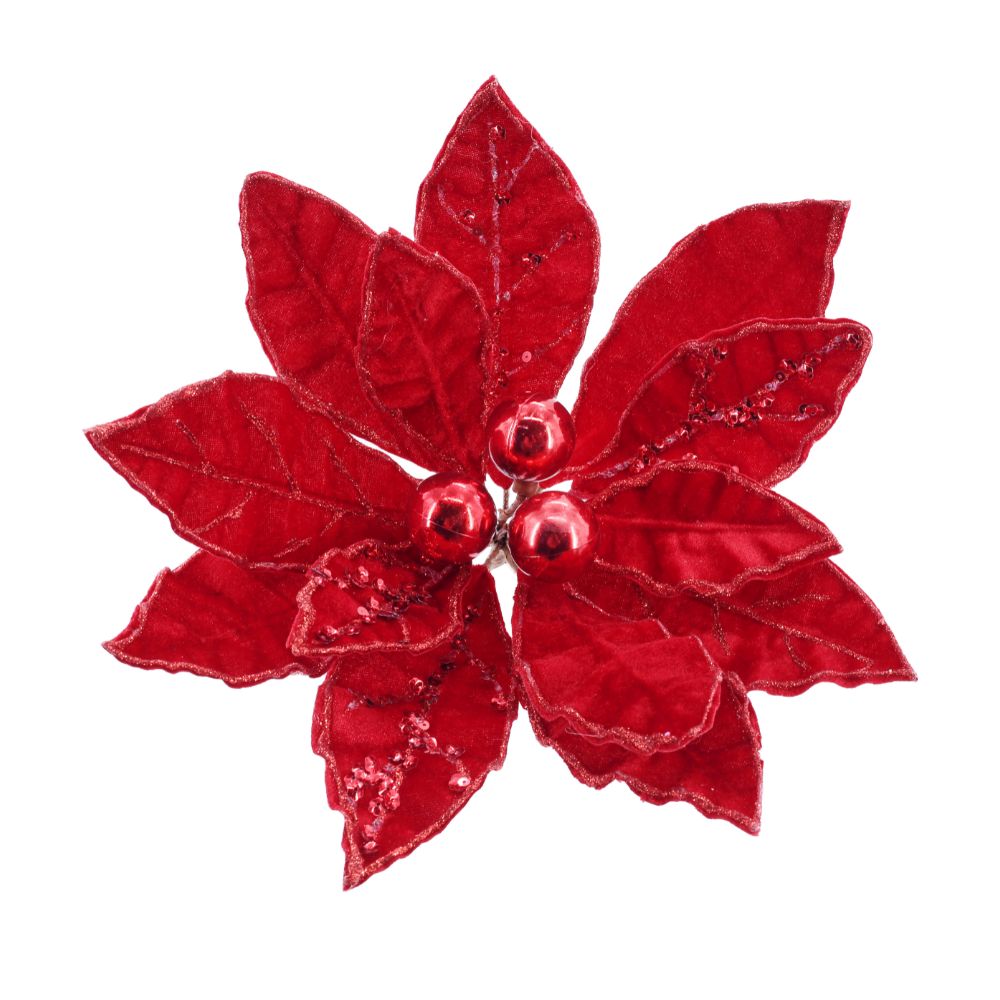 Mini Flocked Poinsettia Pot Red 21cm 1pc