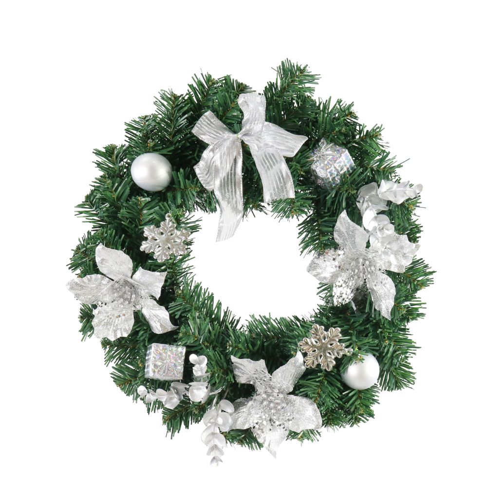 Christmas Tinsel Wreath Dark Green & White Tip with Bow & Red Cheery with Bauble 16cm 1pc