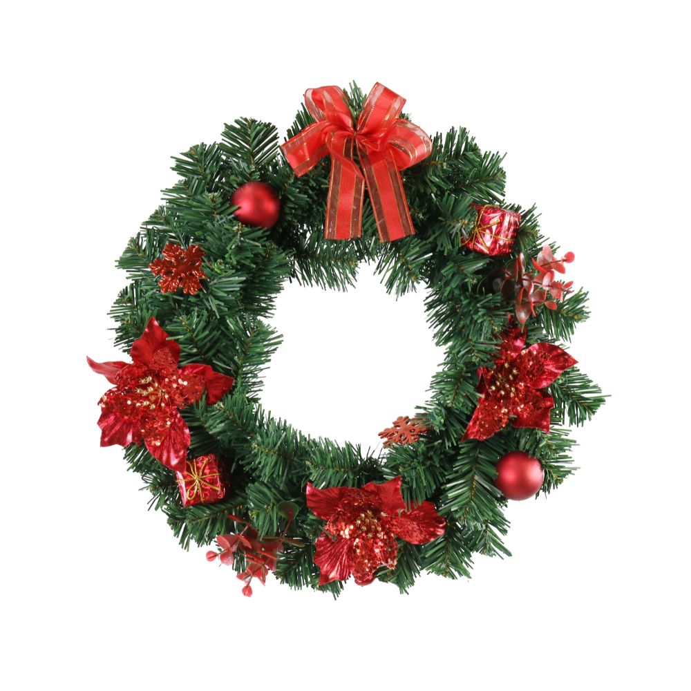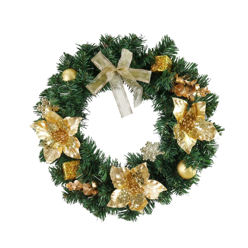 Pine Poinsettia Wreath Gold 40cm 1pc