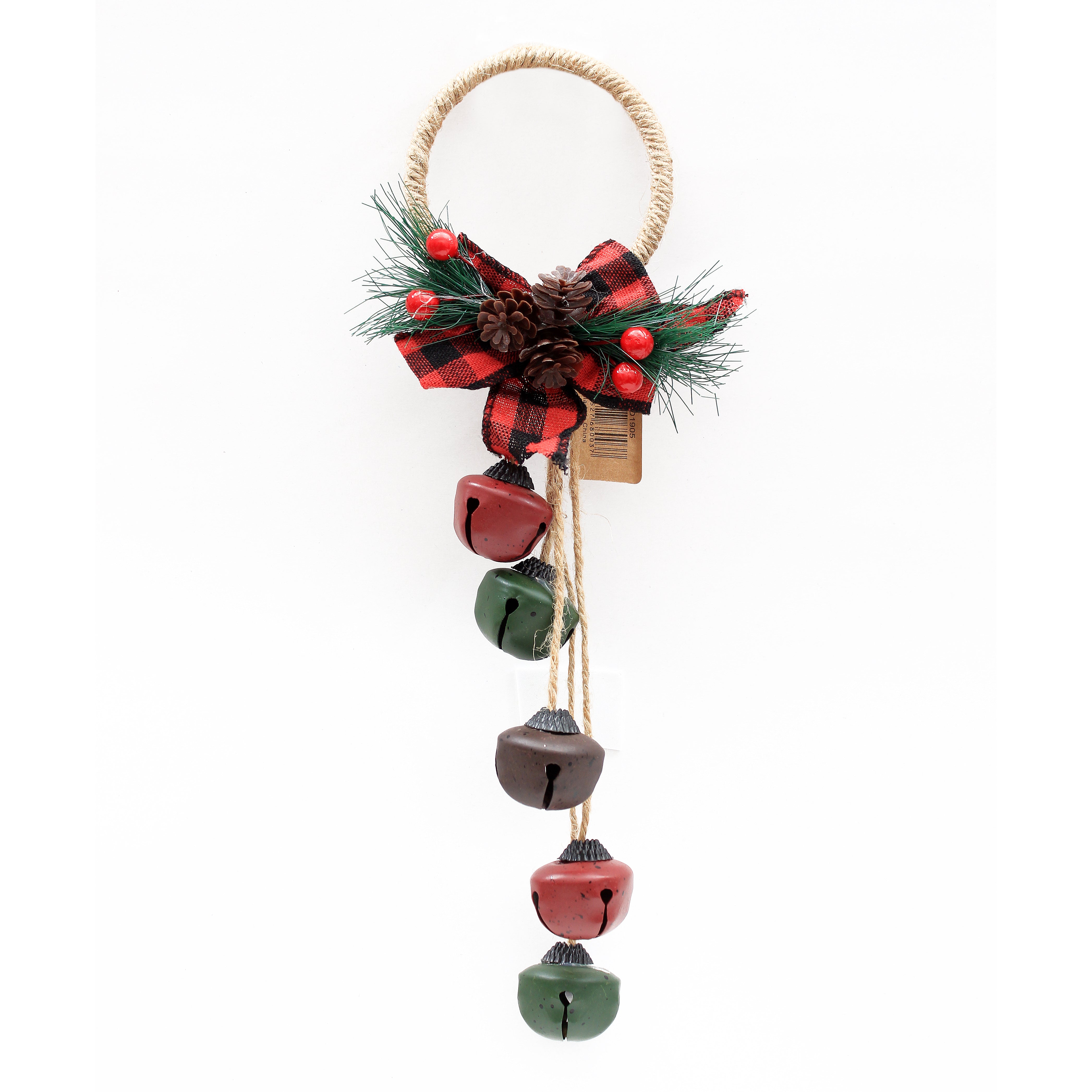 Christmas Door Hanger - Rustic 5 Nutbells Green & Red