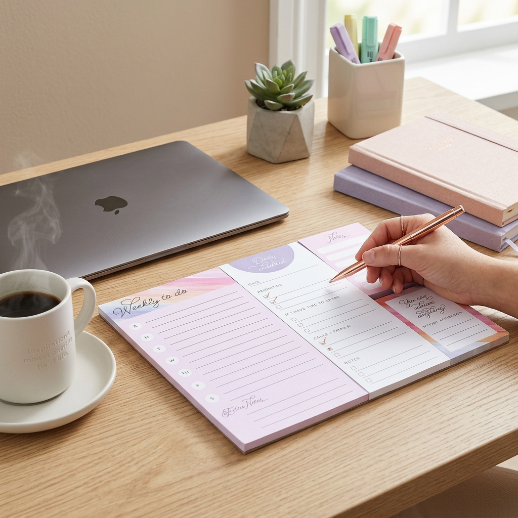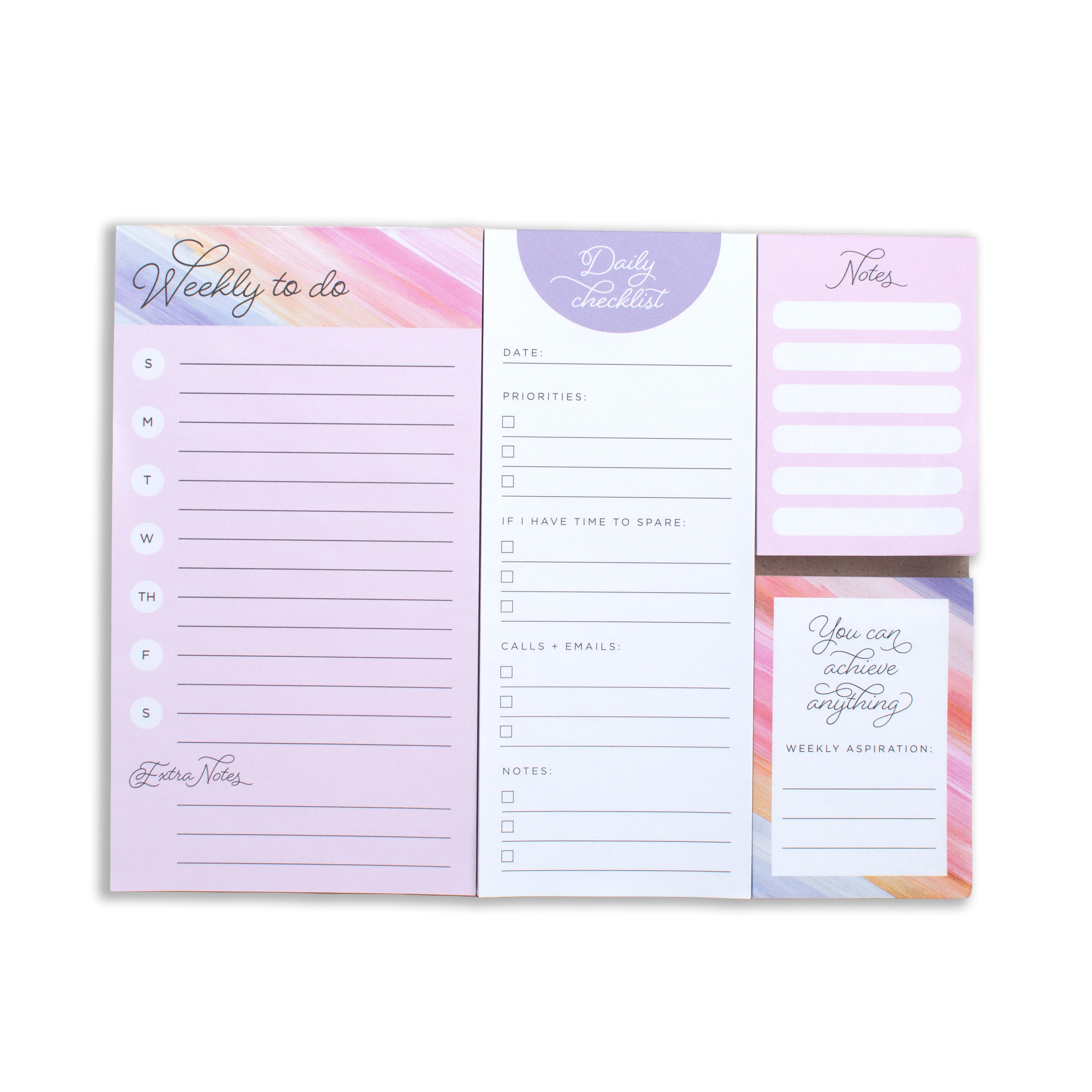 Sticky Notepad Essential Notes Assorted 24 X 19cm 50Sheet ,Weekly To Do 50sheet,Daily Checklist 50Sheet ,Mini Note 50Sheet Weekly Aspiration 50sheet