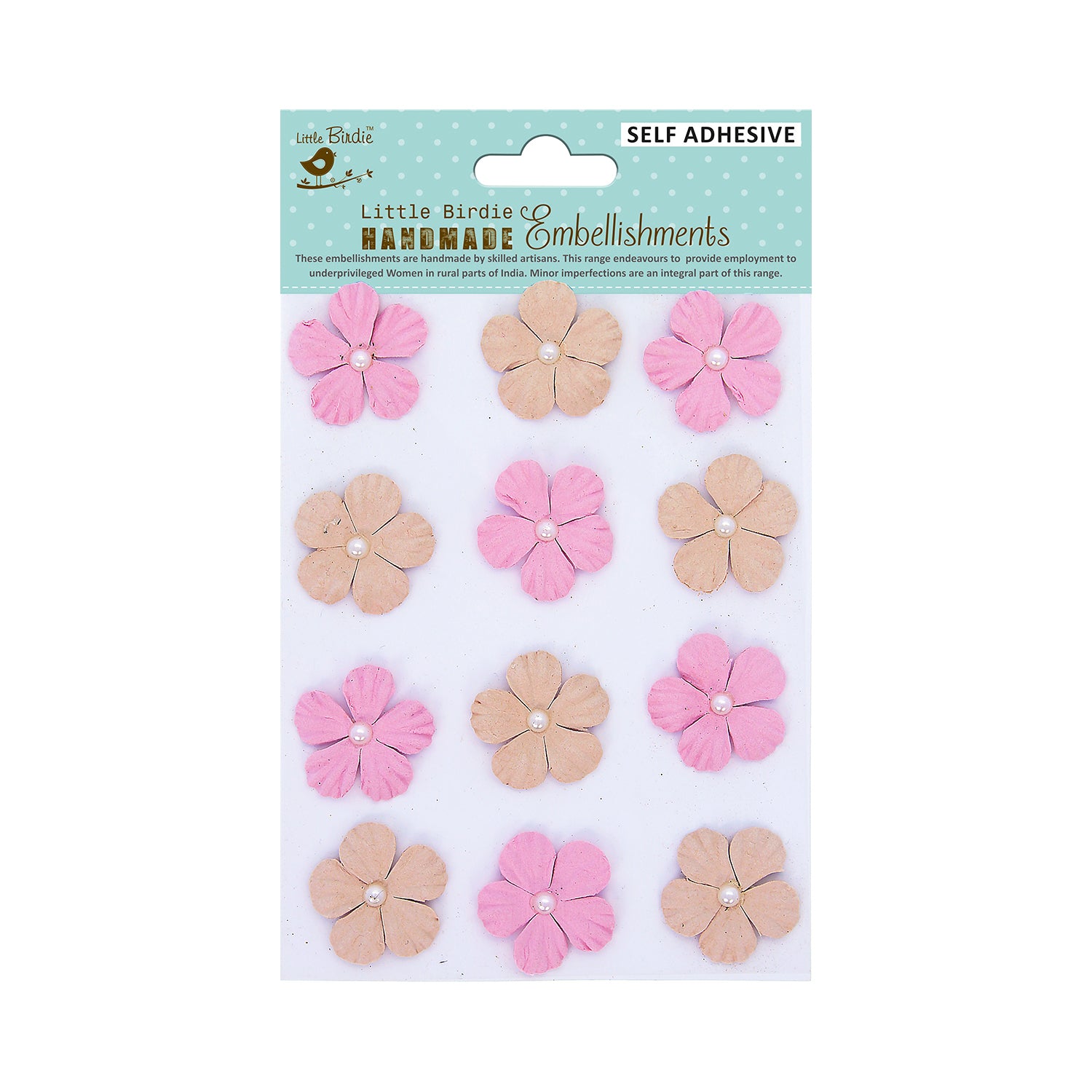 Handmade Embossed Pearl Petal Flowers Pink 12Pc