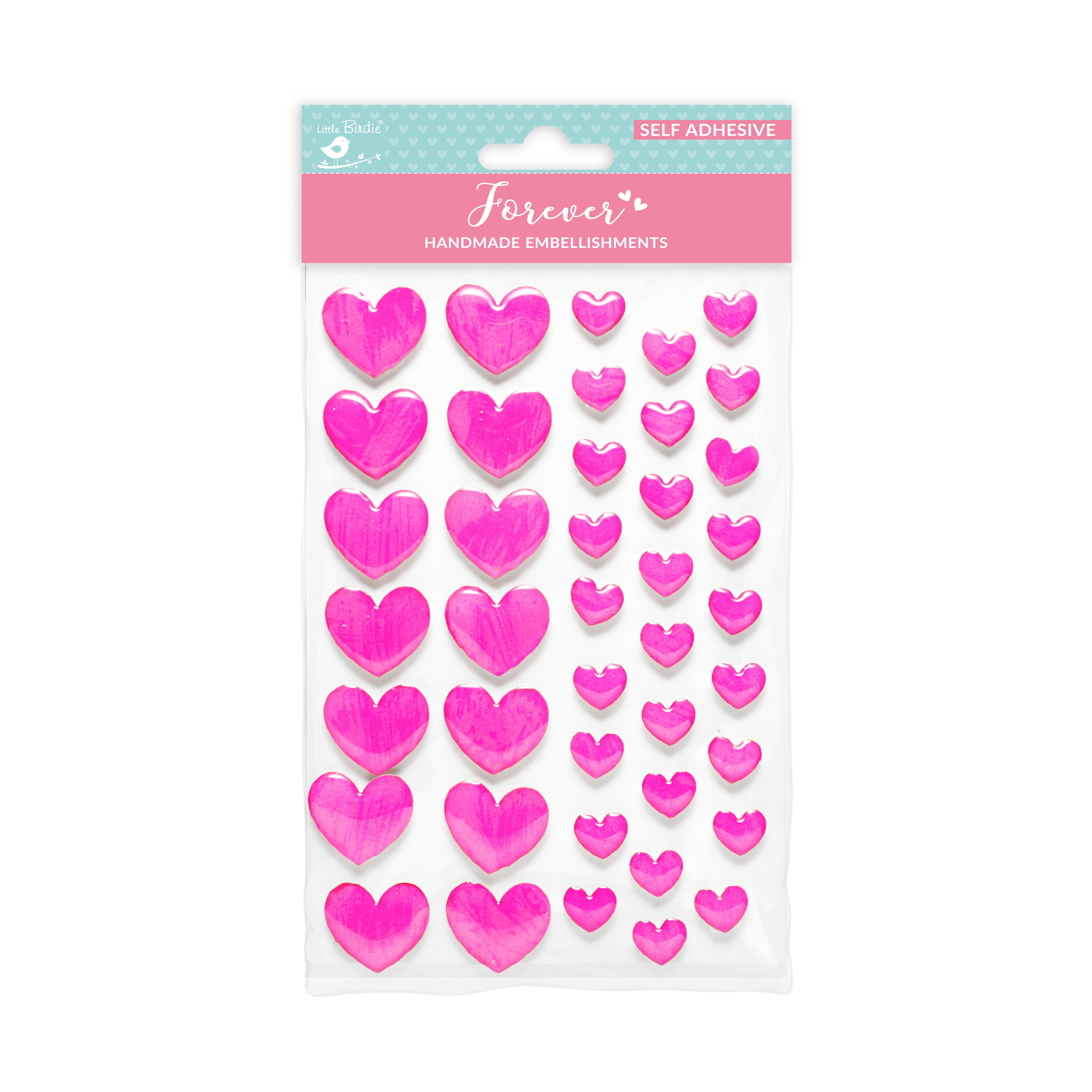 Just peel and stick these pretty heart shapes coated with glassy resin to instantly add colour and an interesting look to your projects.