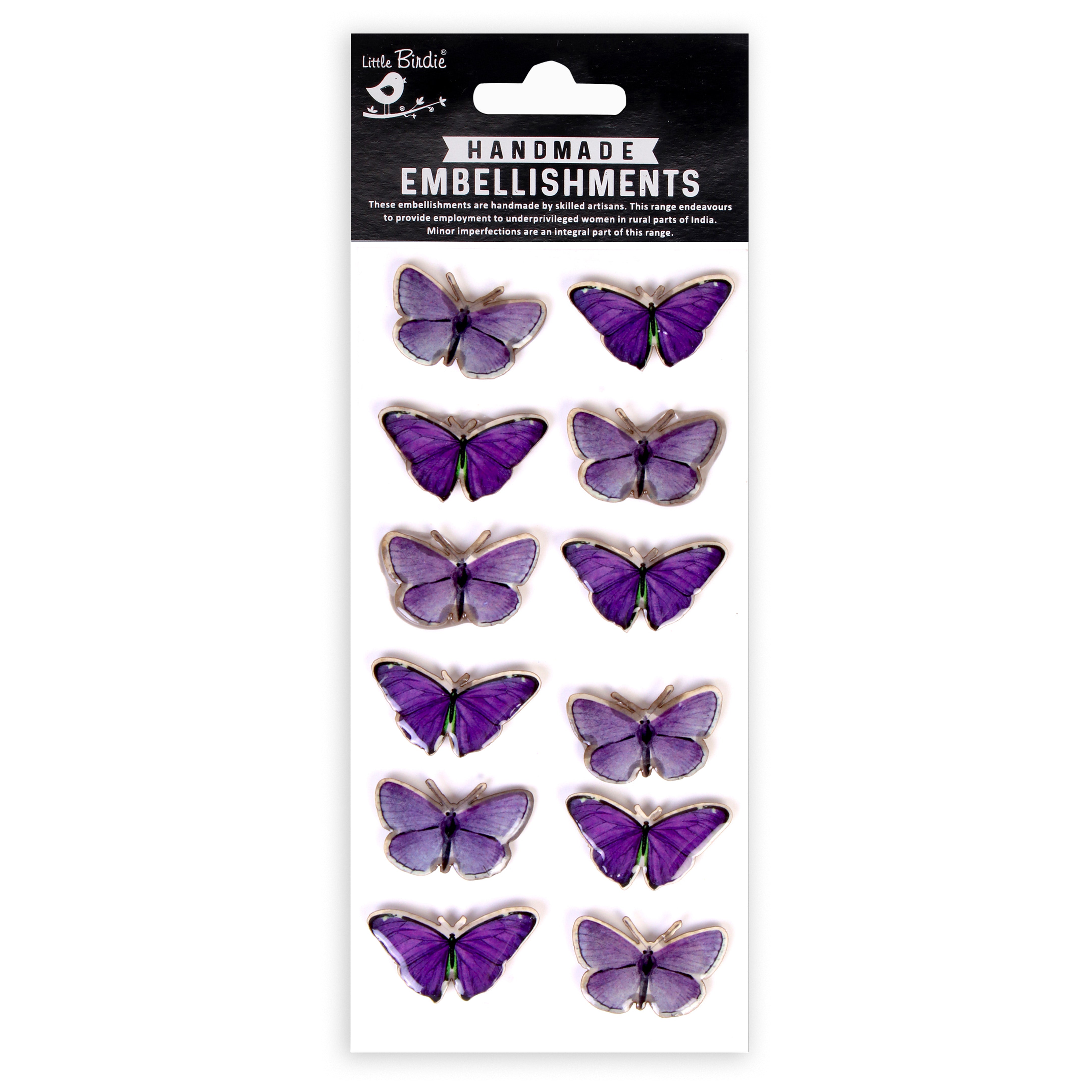 Handmade Resin Stickers - Glassy Butterfly, Purple Tint, 12pc