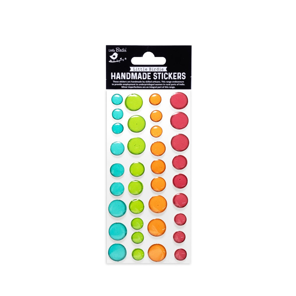 Handmade Resin Stickers - Glassy Dots, Assorted Colours, 36pc, 1 Sheet