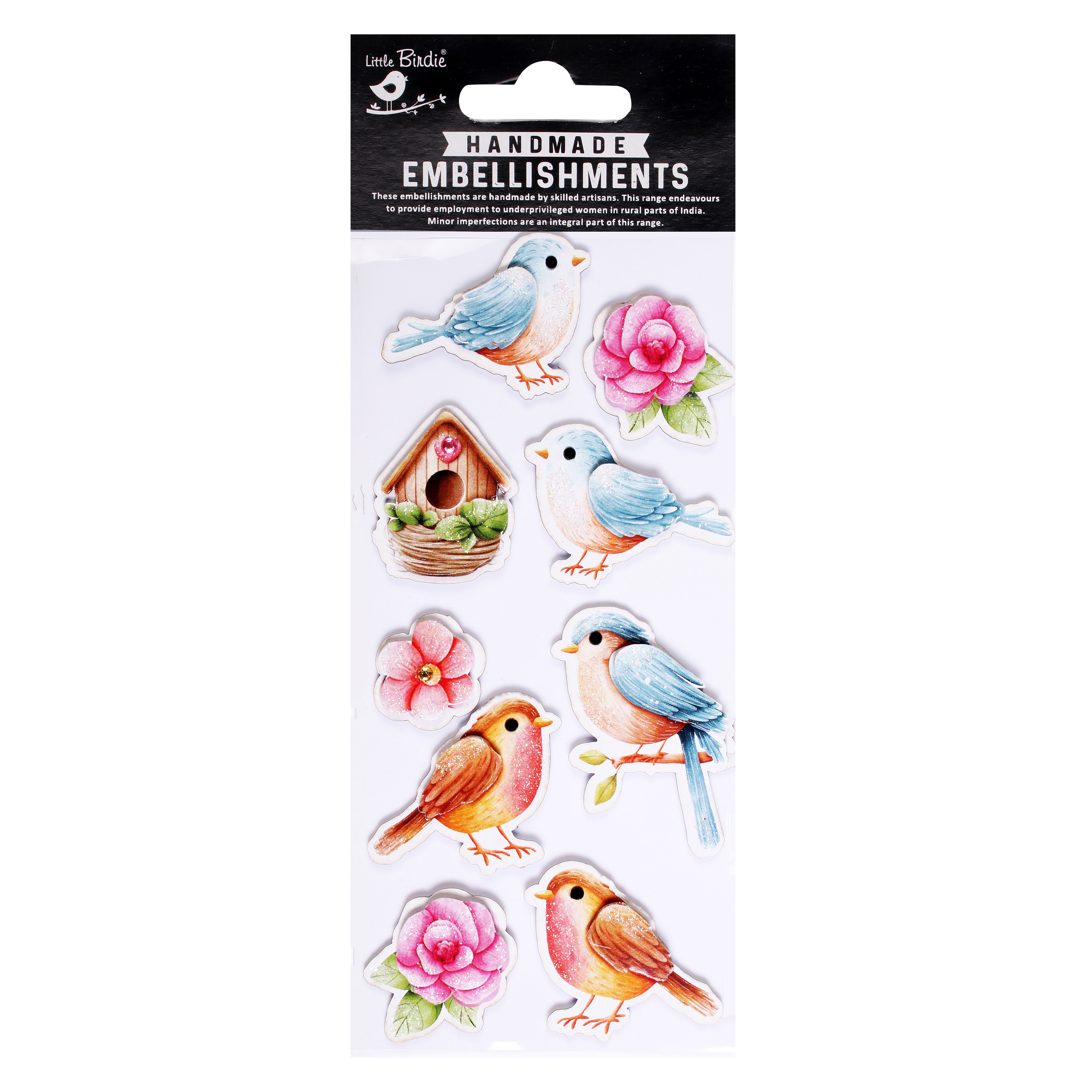 Handmade Stickers - Bird Dazzle, 9pc, 1 Sheet