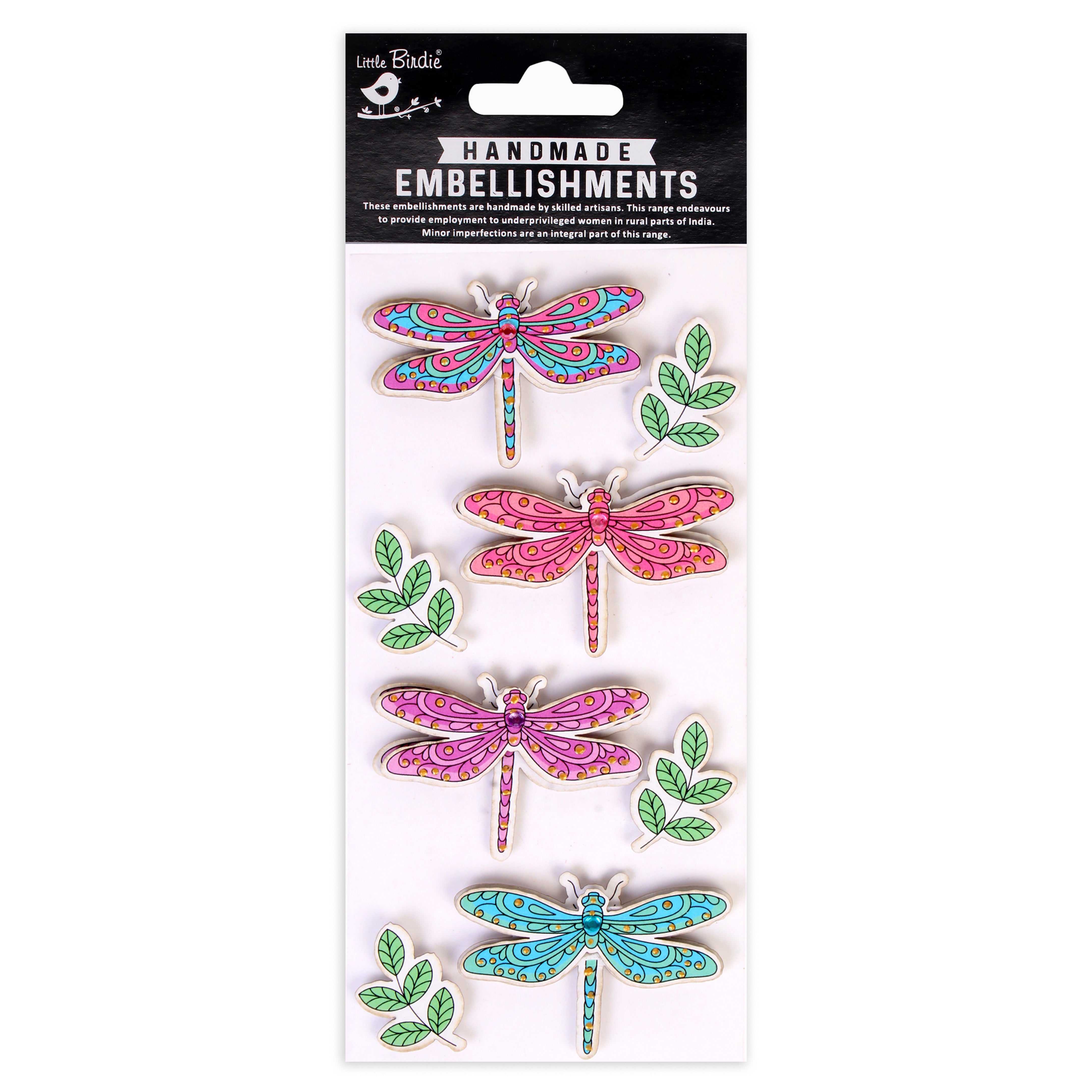 Handmade Stickers - Doodle Dragonfly 8pc, 1 Sheet