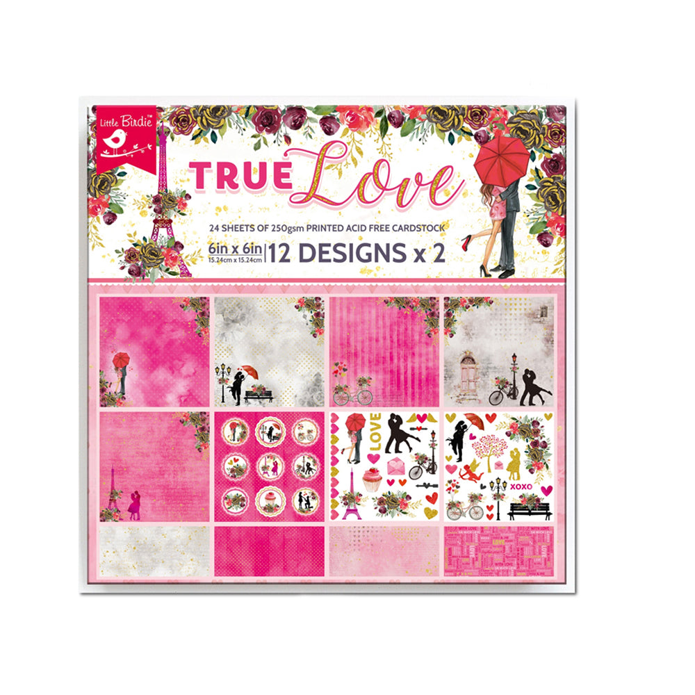 Printed Cardstock Pack 6 x 6, 12 Designs, 24 Sheets, 250gsm - True Love