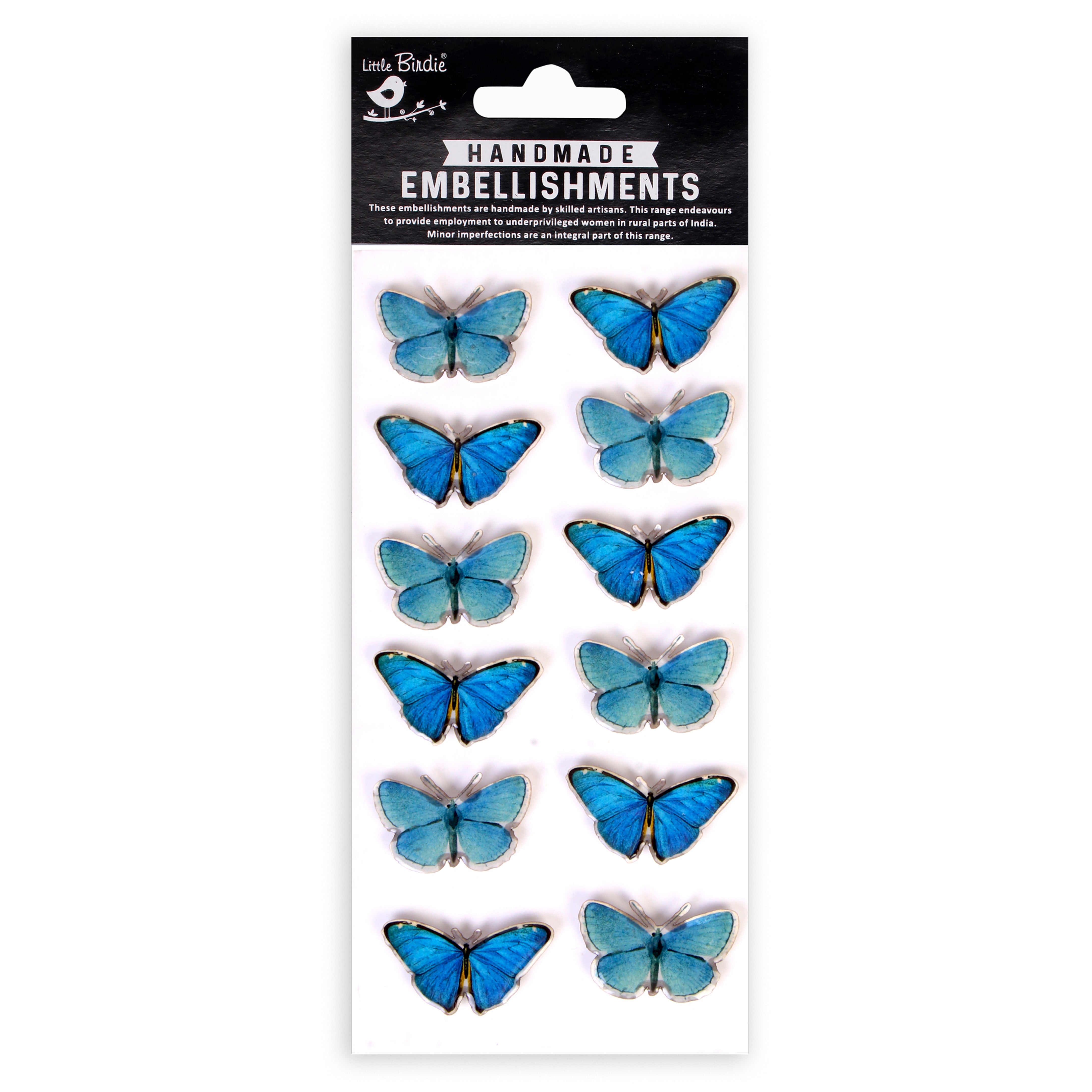 Handmade Resin Stickers - Glassy Butterfly, Biue Tint, 12pc, 1 Sheet
