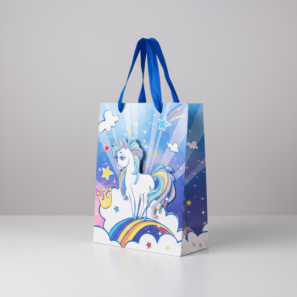 Delight your loved ones with this charming gift bag featuring a 3D glittery design. Perfectly designed to impress, it comes ready to use—no extra wrapping needed!