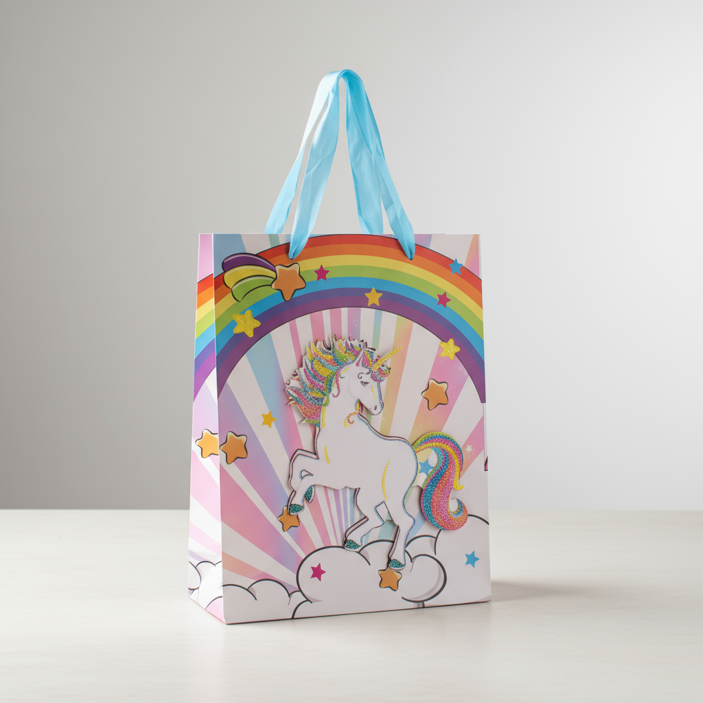3D Glitter Paper Gift Bag Unicorn Rainbow 32 X 25.5 X 11cm 1pc