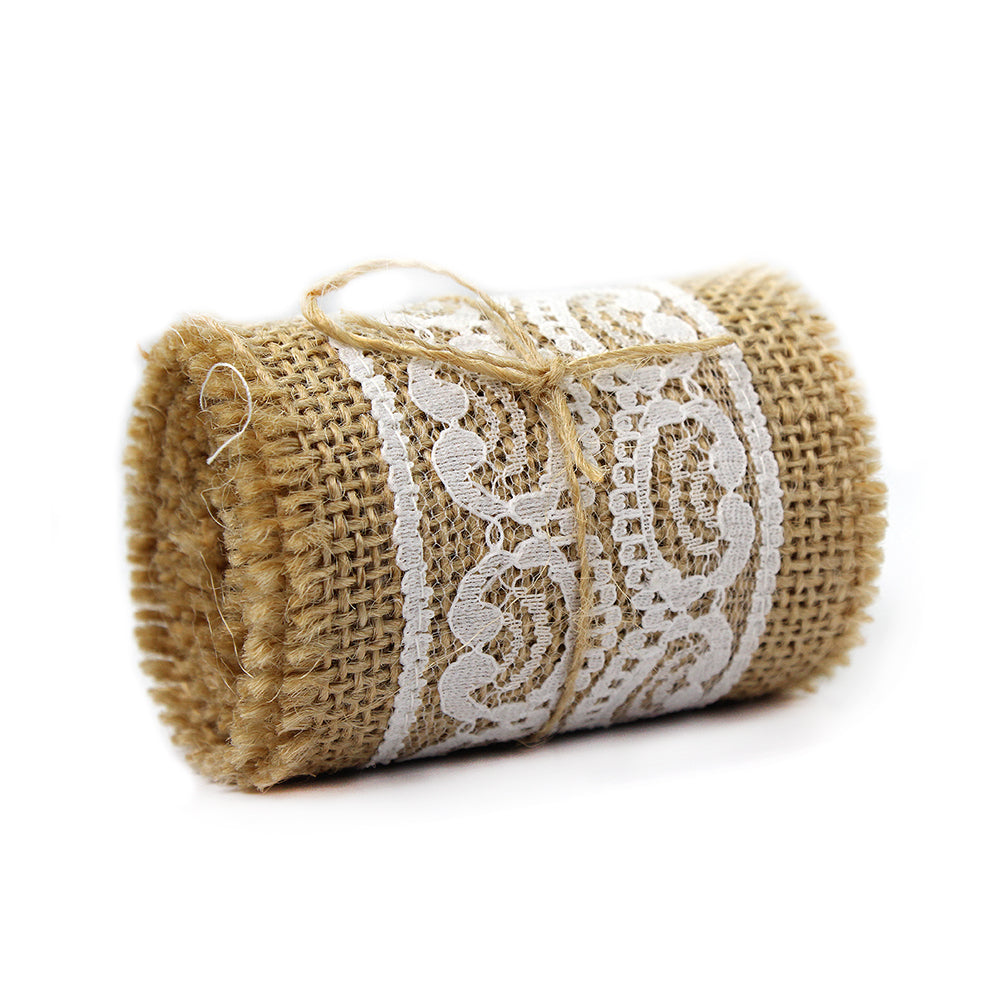 - This Natural Burlap Roll with White Lace at centre, 6cm in Width comes in a Roll of 1 Metre(1.094 yards) length and is available in many designs.