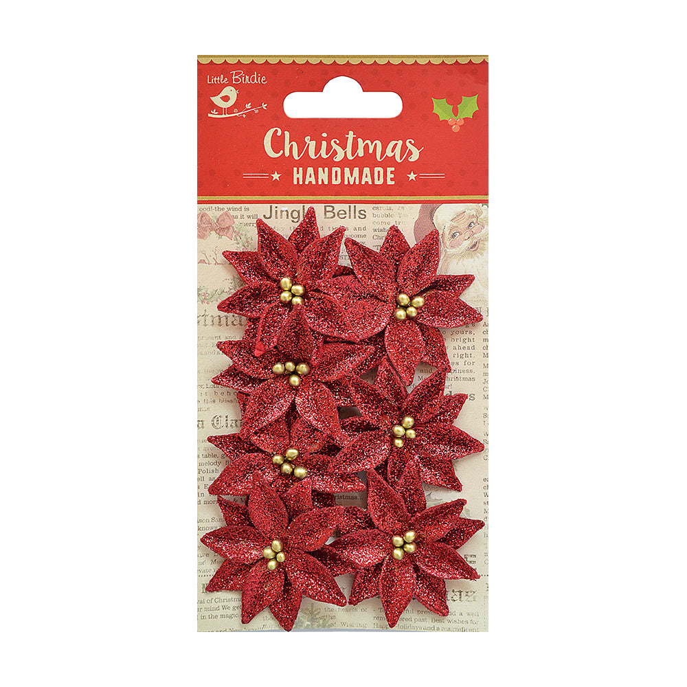 Little Birdie Handmade Flower Christmas Glitter Poinsettia - Red, 7pc