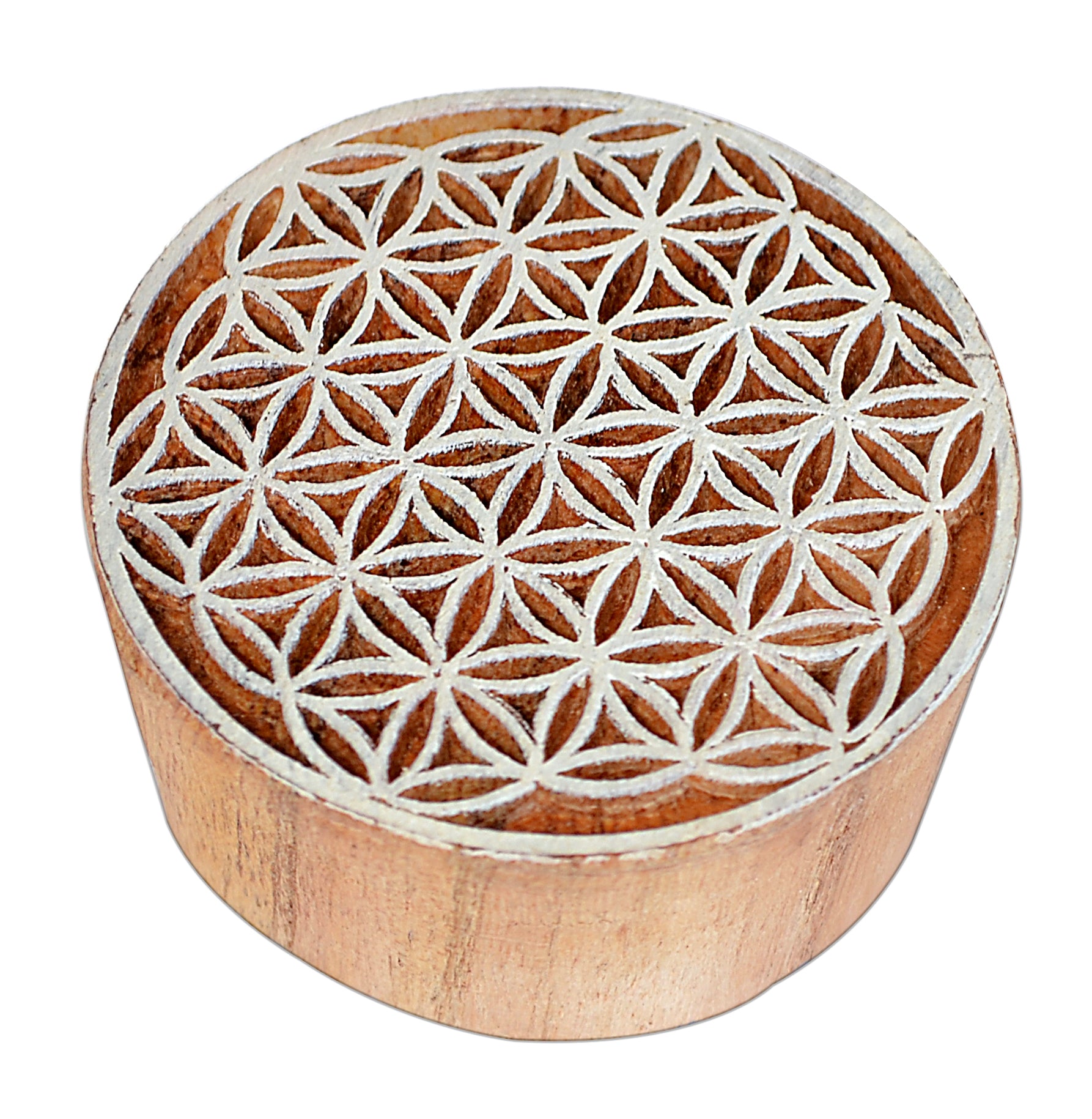 - This Hand carved Wooden Block of an Arabesque design is apprx 2" in Diameter and 1" thick.