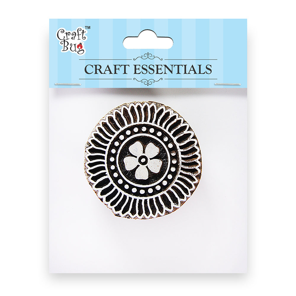 - This Hand carved Wooden Block of a carved Floral motif is apprx 2" in Diameter and 1" thick.