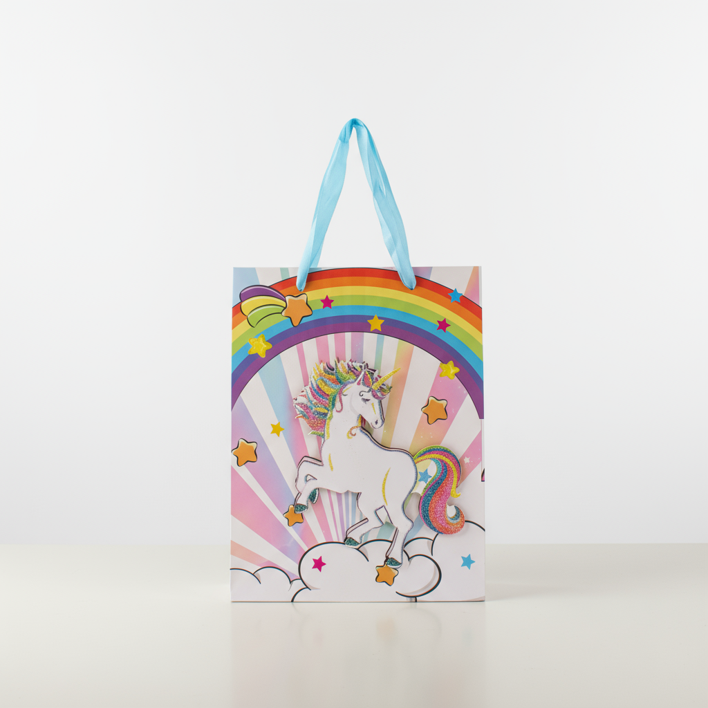 3D Glitter Paper Gift Bag Unicorn Rainbow 23 X 18 X 10cm 1pc