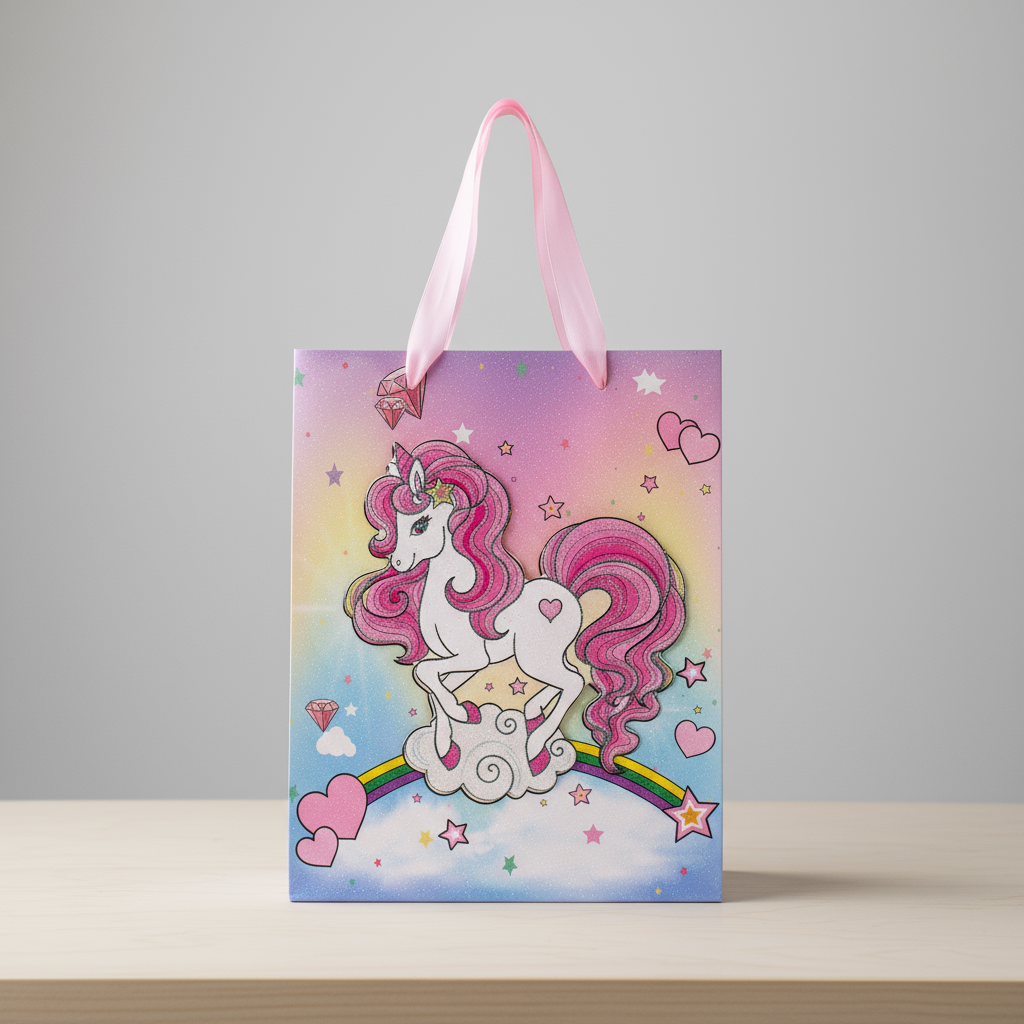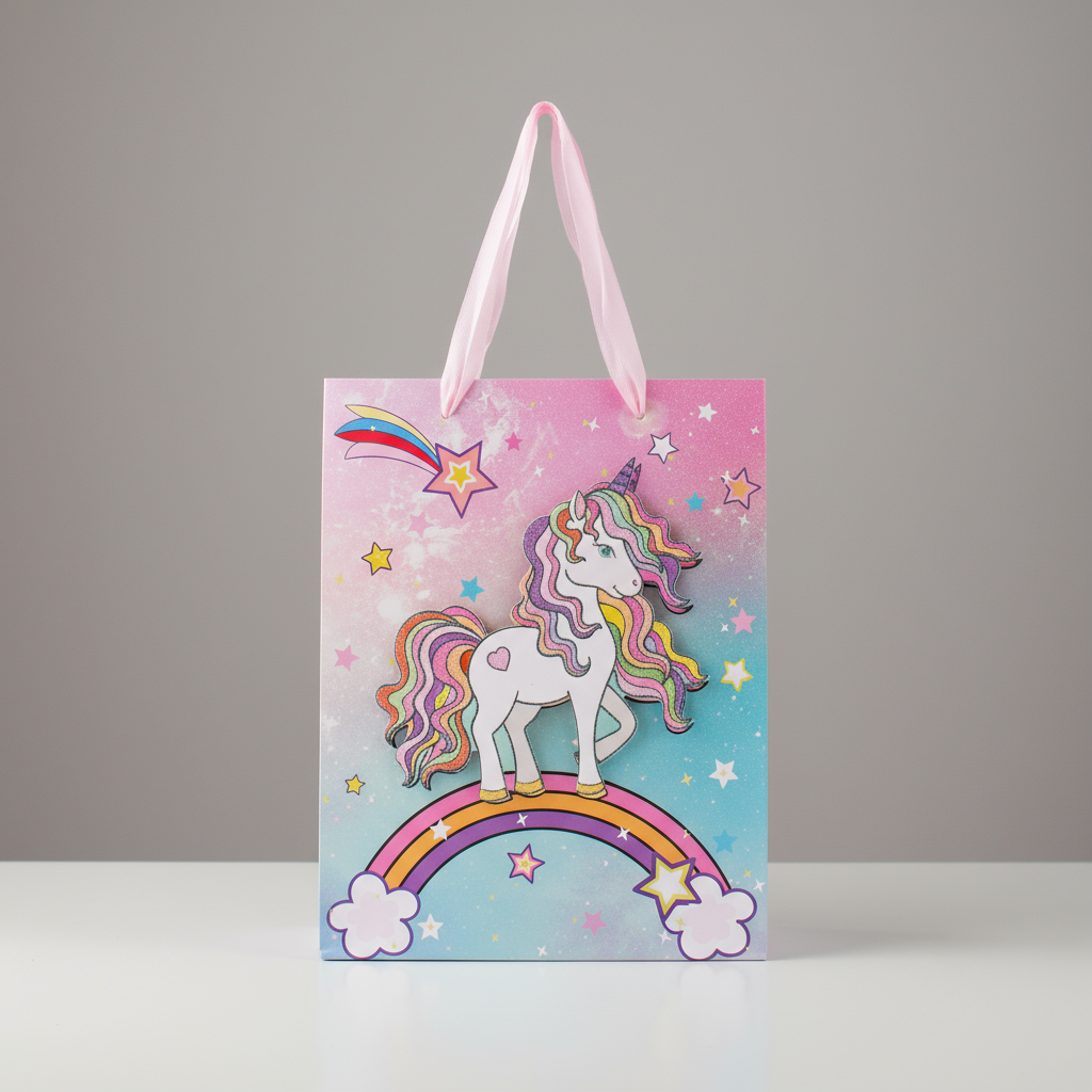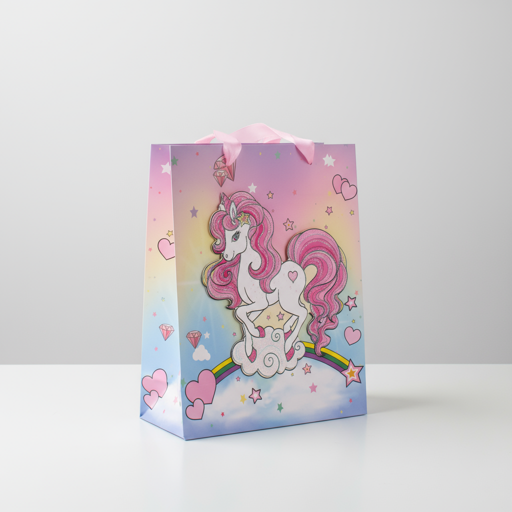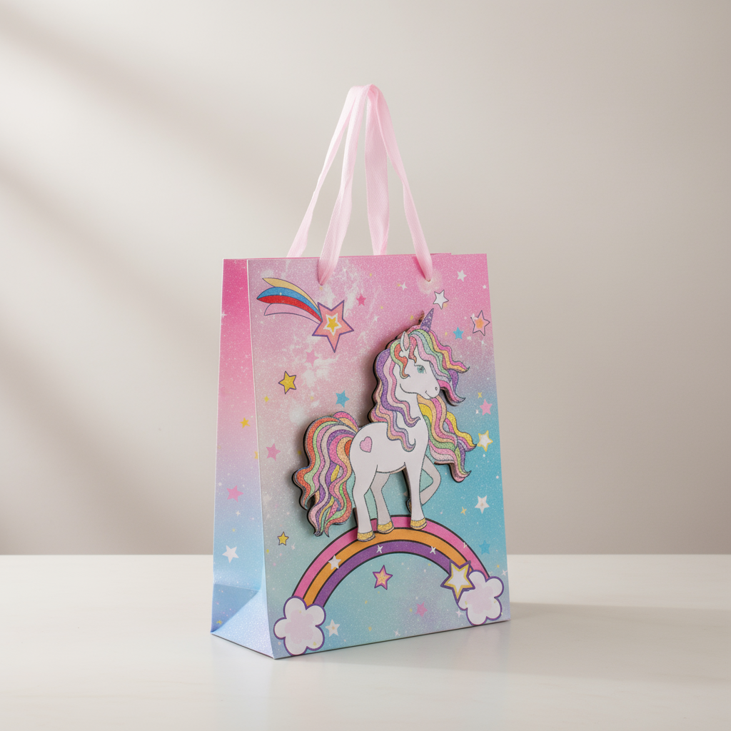 3D Glitter Paper Gift Bag Unicorn Pastel 23 X 18 X 10cm 1pc