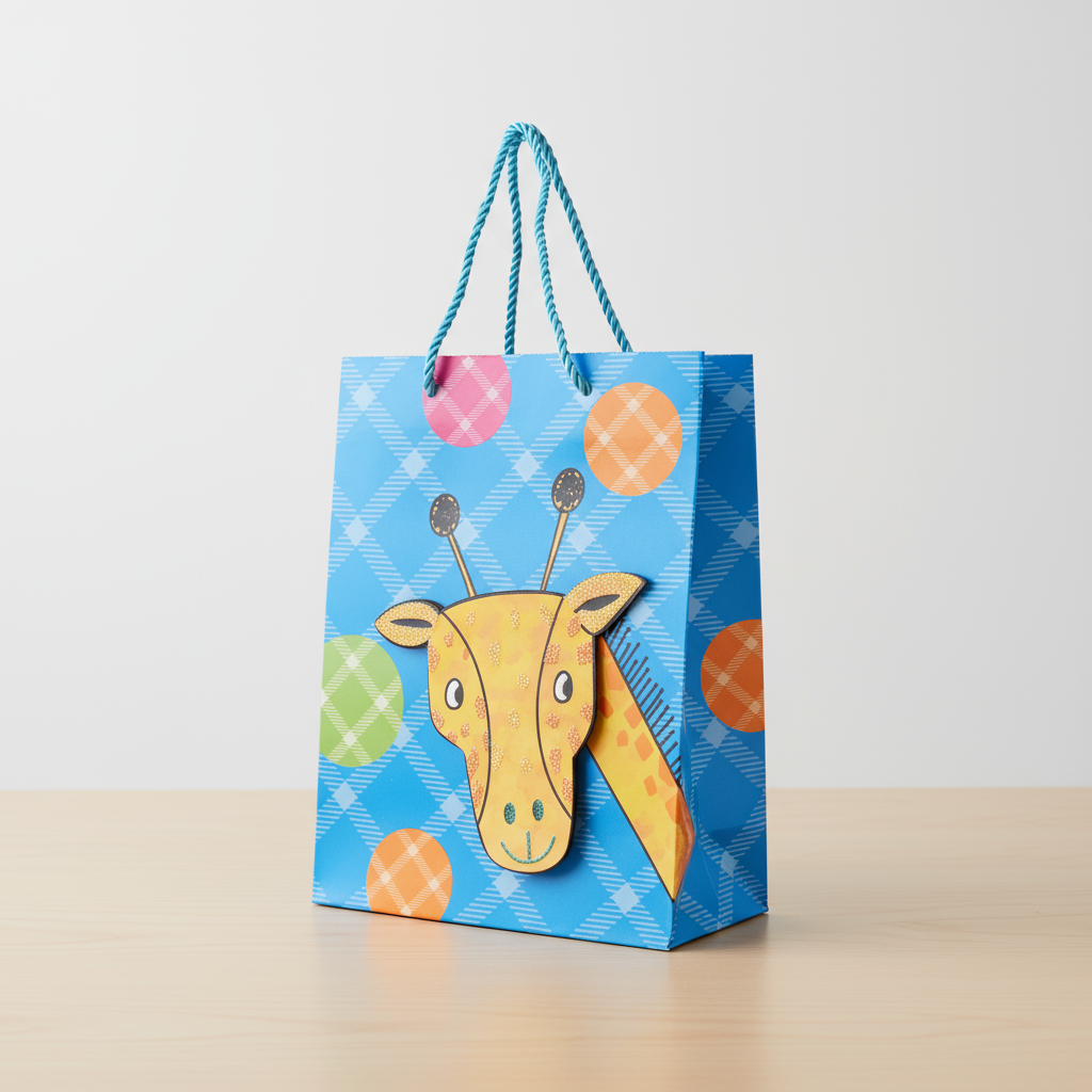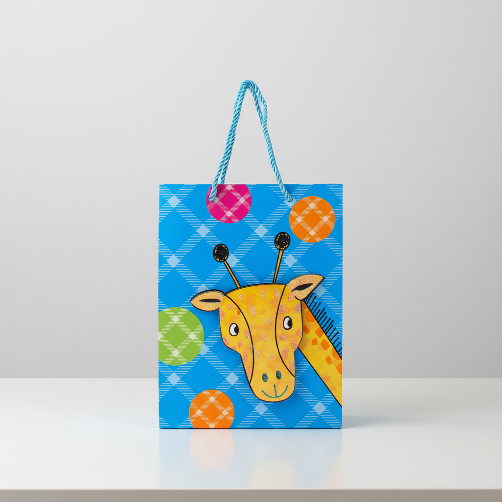3D Paper Gift Bag Yellow Giraffe 23 X 18 X 10cm 1pc