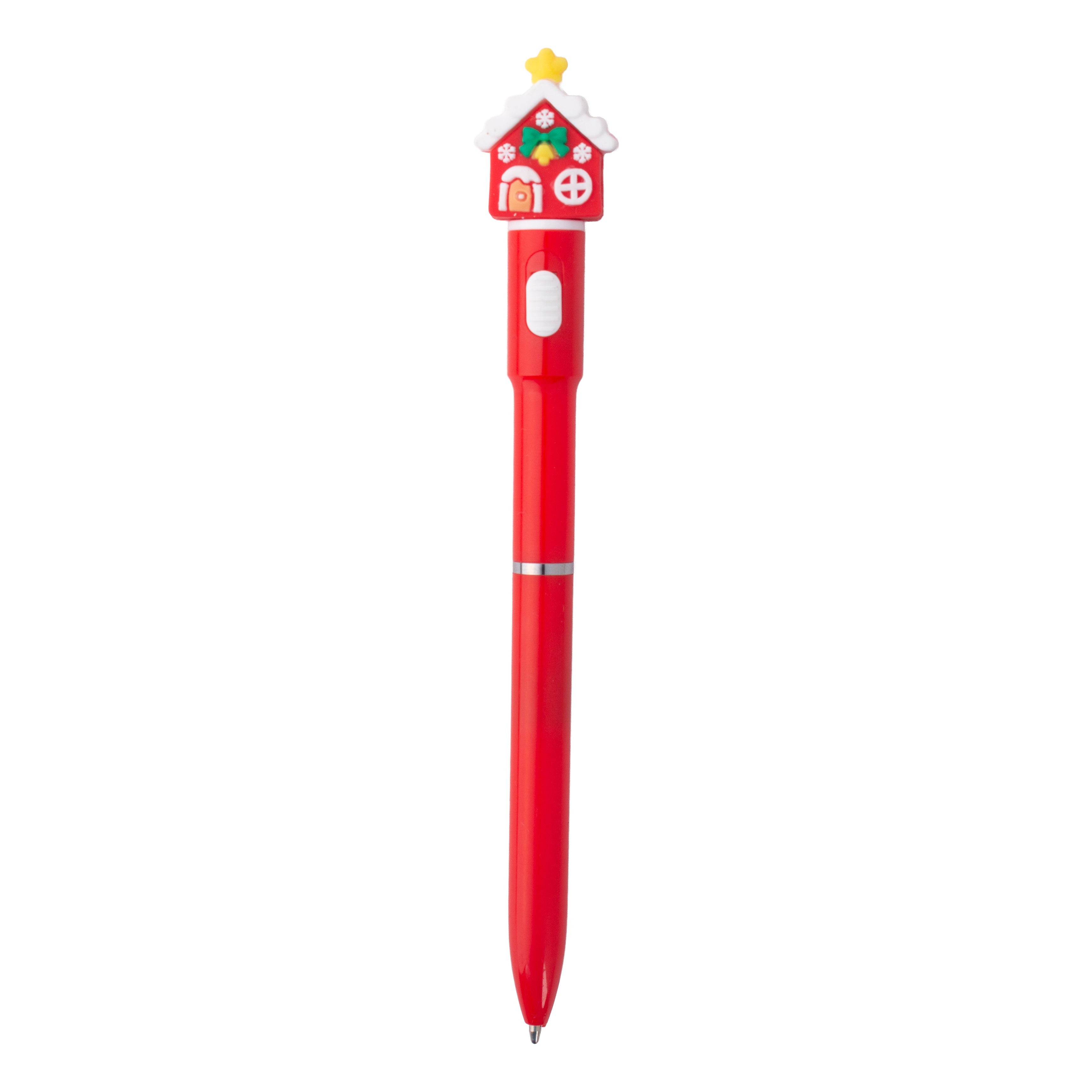 Christmas House Light up Blue Ballpoint Pen 0.7mm Tip 1pc