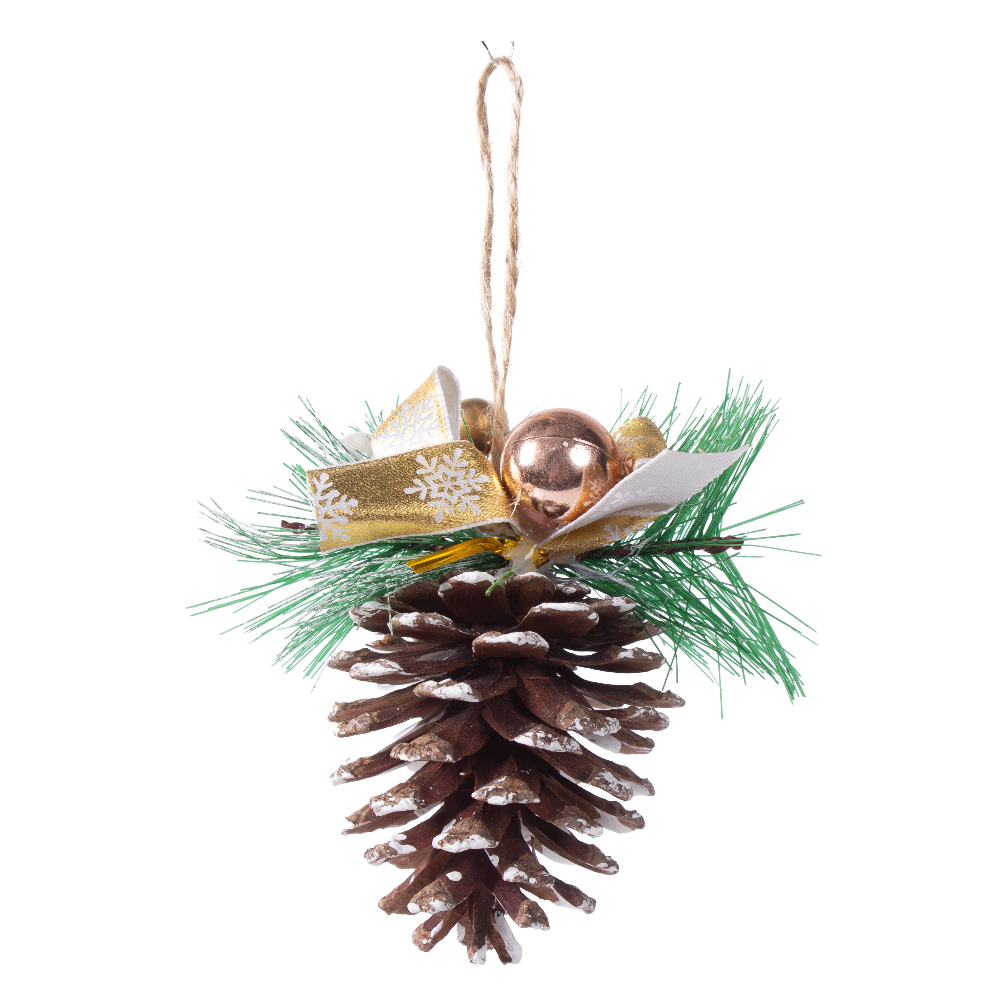 Christmas Decoration Snowy Pine Cone Hanging 10cm 1pc