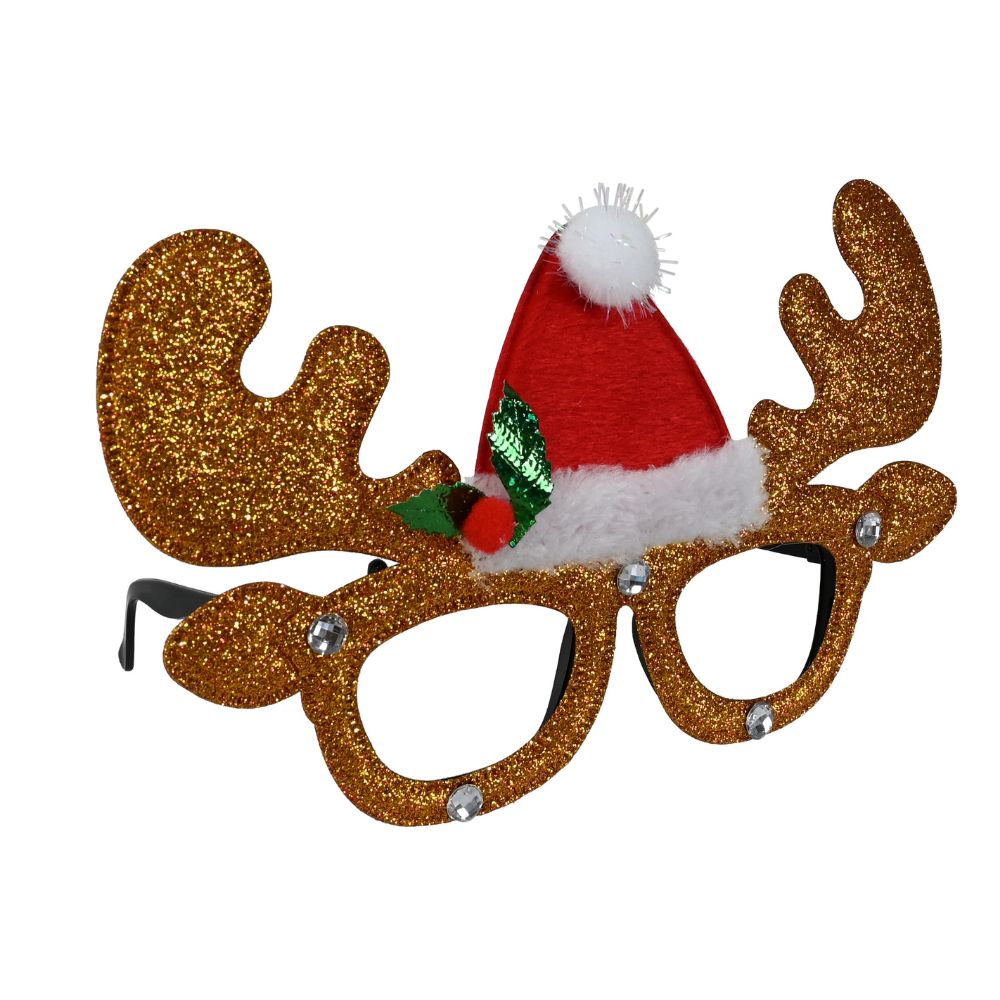Christmas Glitter Reindeer Eye Glasses/Goggles Adult and Kids Gold 1pc