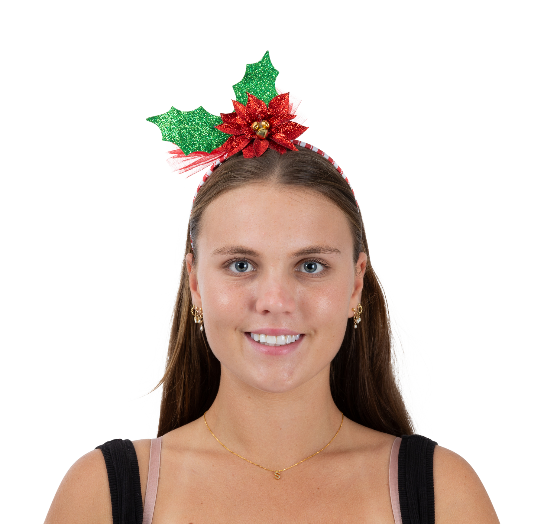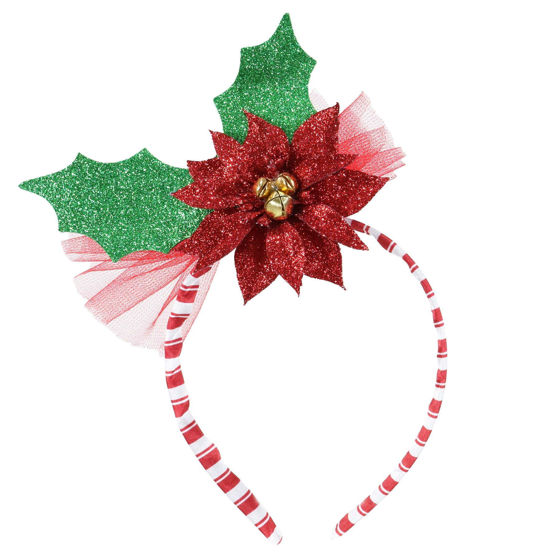 Headband Poinsettia Holly Leaf With Bow 1pc