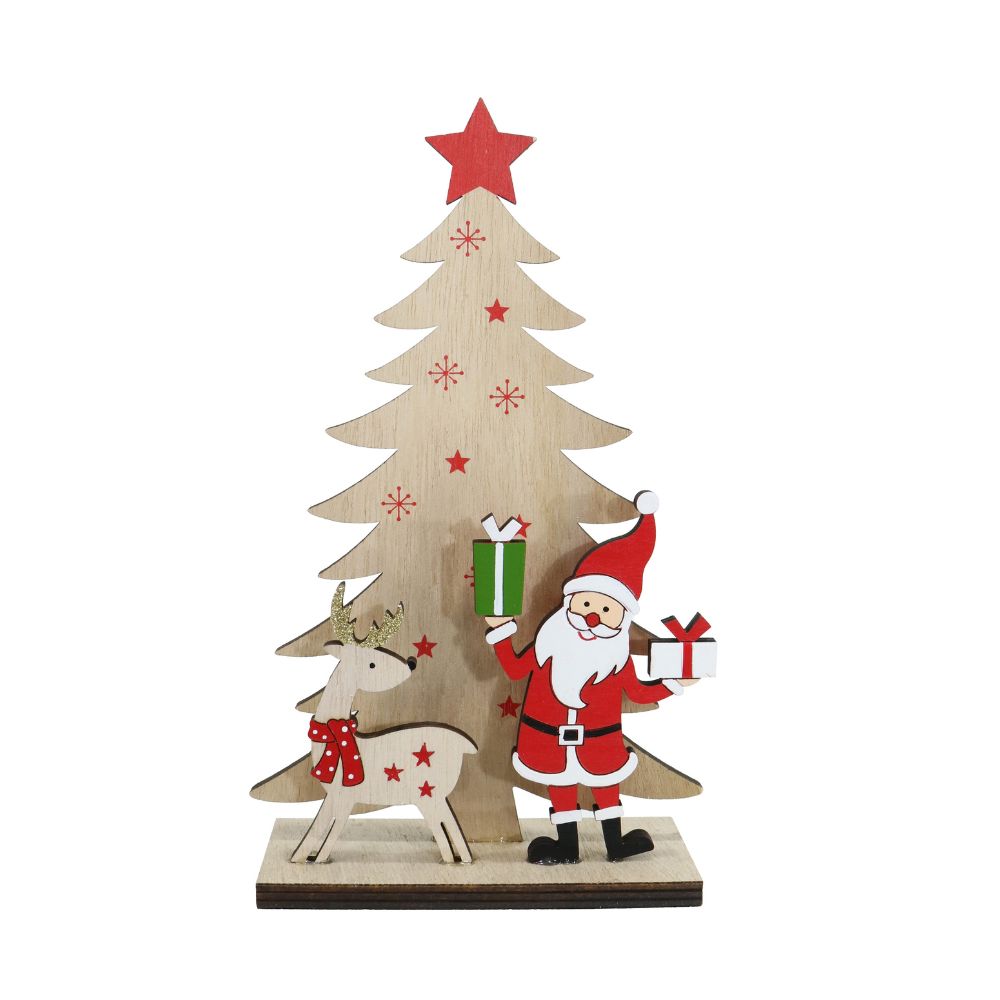 Table Tree With Santa Reindeer Natural 12 X 4.5 X 20cm 1pc