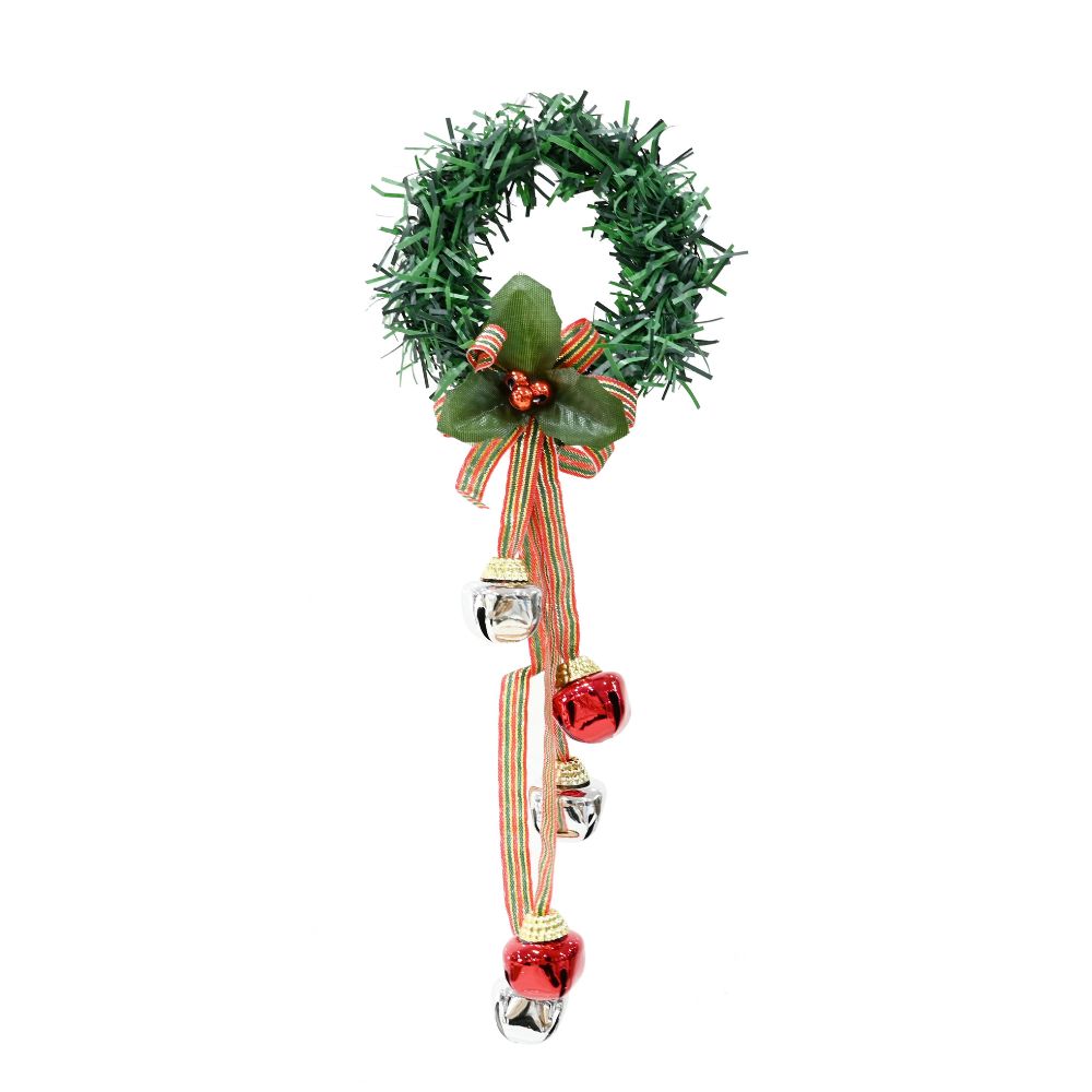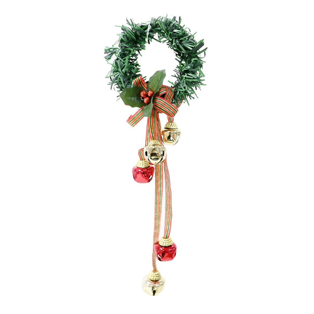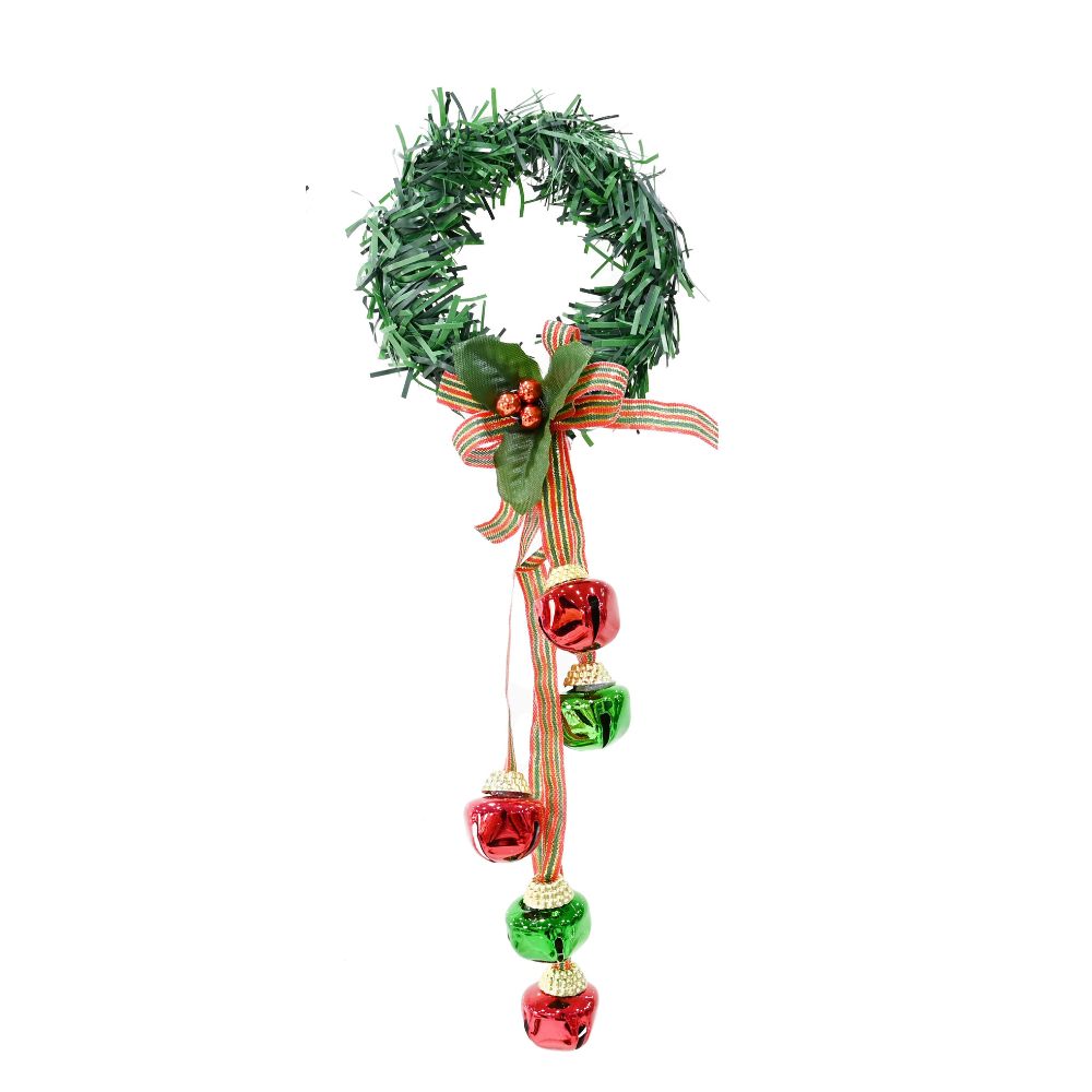 Tinsel Wreath Adorned with 5 X 2cm Shiny Nutbells on Ribbon Red-Green 30cm 1pc