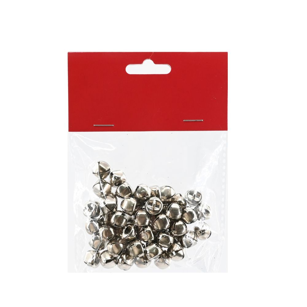 Tinsel Wreath Adorned with 5 X 2cm Shiny Nutbells on Ribbon Red-Silver 30cm 1pc