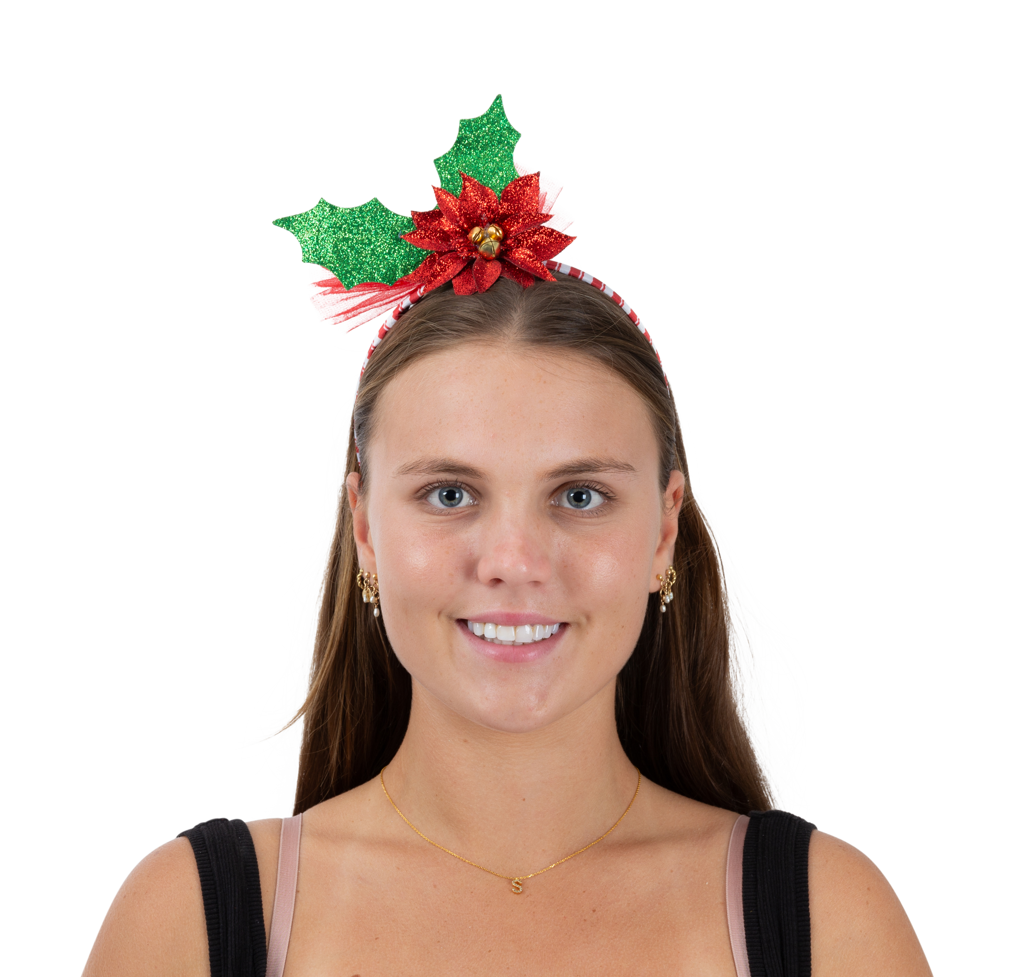 Headband Poinsettia Holly Leaf With Bow 1pc