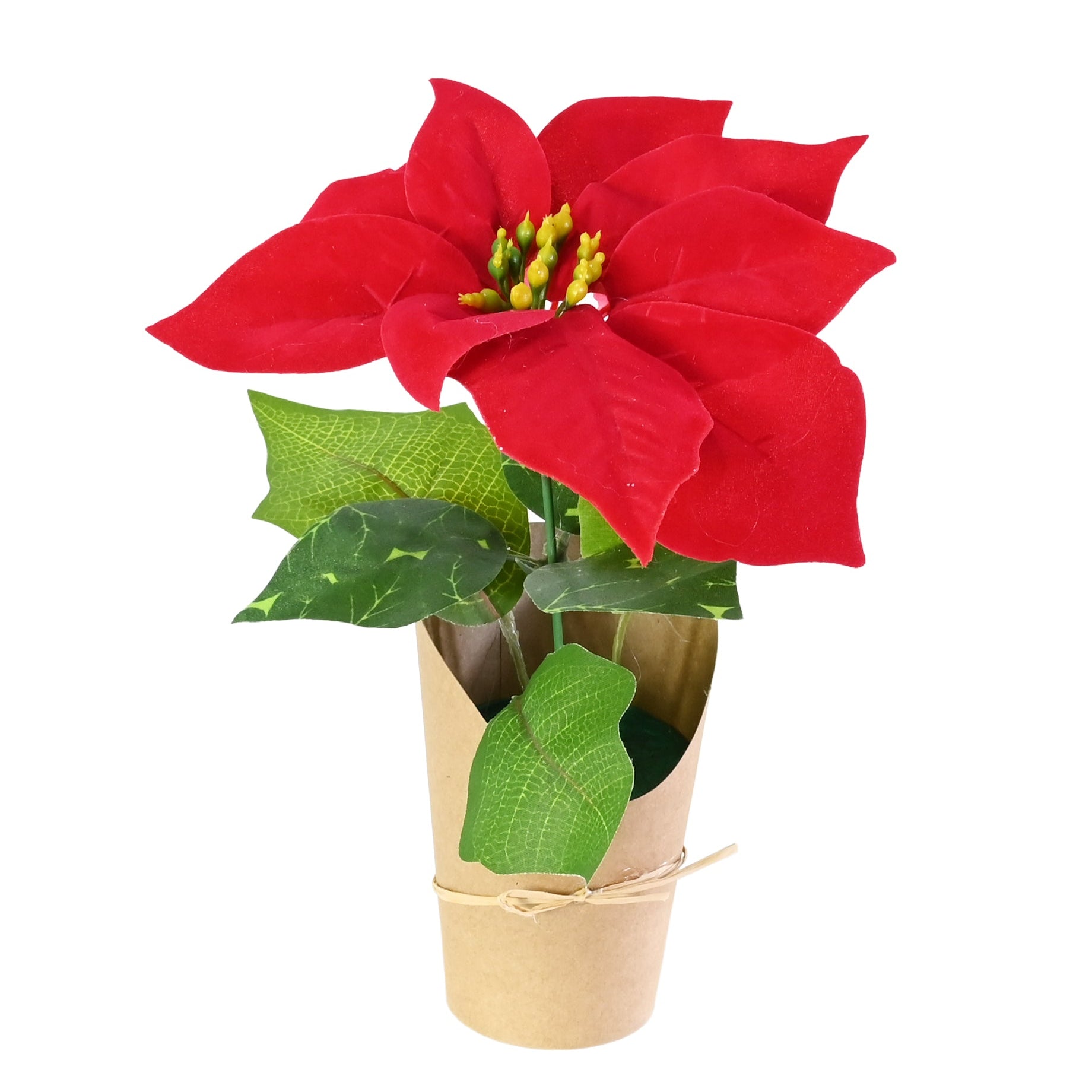 Mini Flocked Poinsettia Pot Red 21cm 1pc