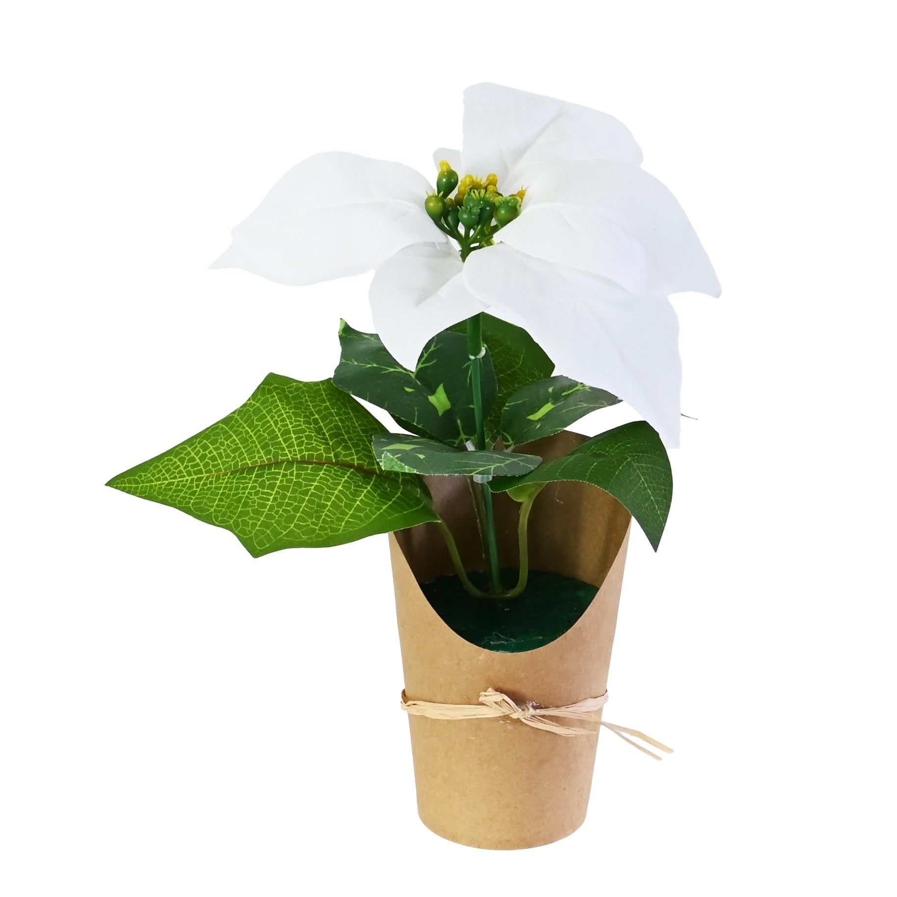 Mini Flocked Poinsettia Pot White 21cm 1pc