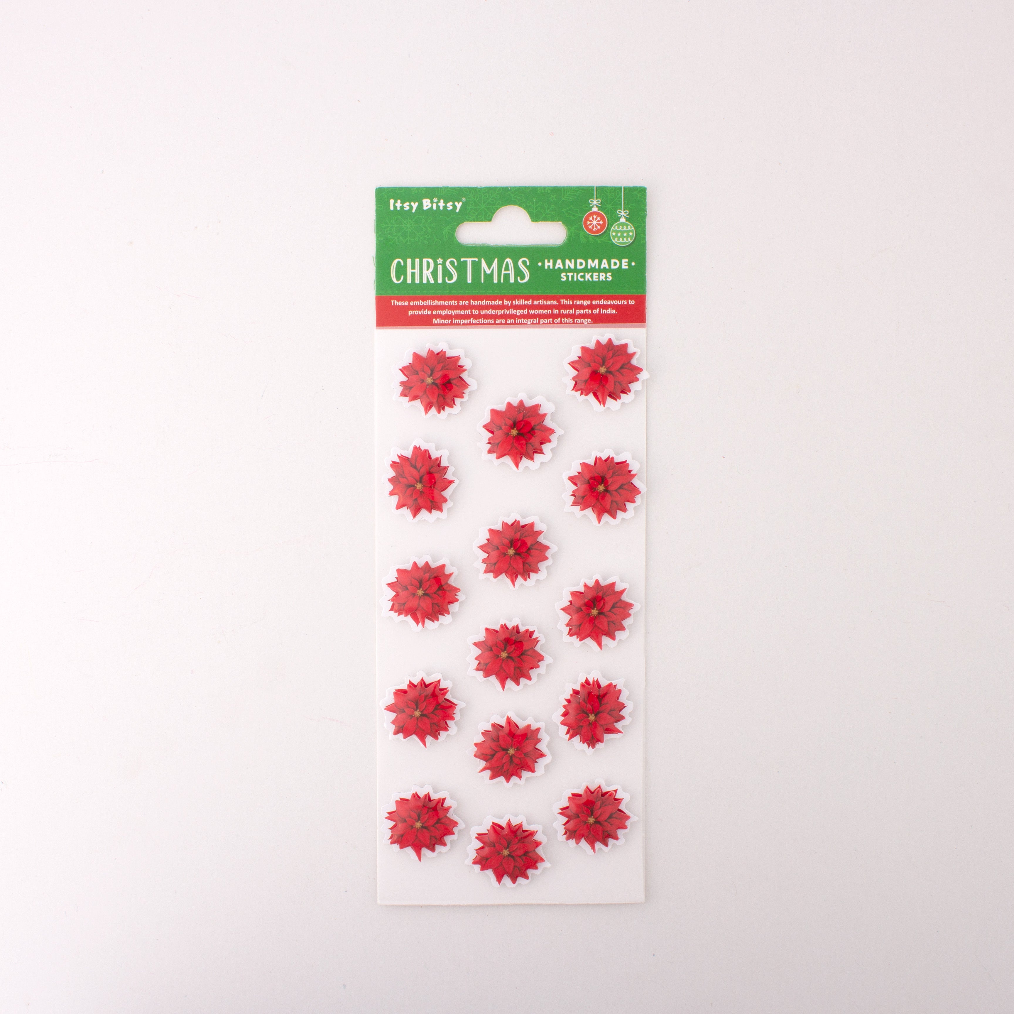 Handmade Resin Self Adhesive Stickers Glassy Poinsettia 15pc