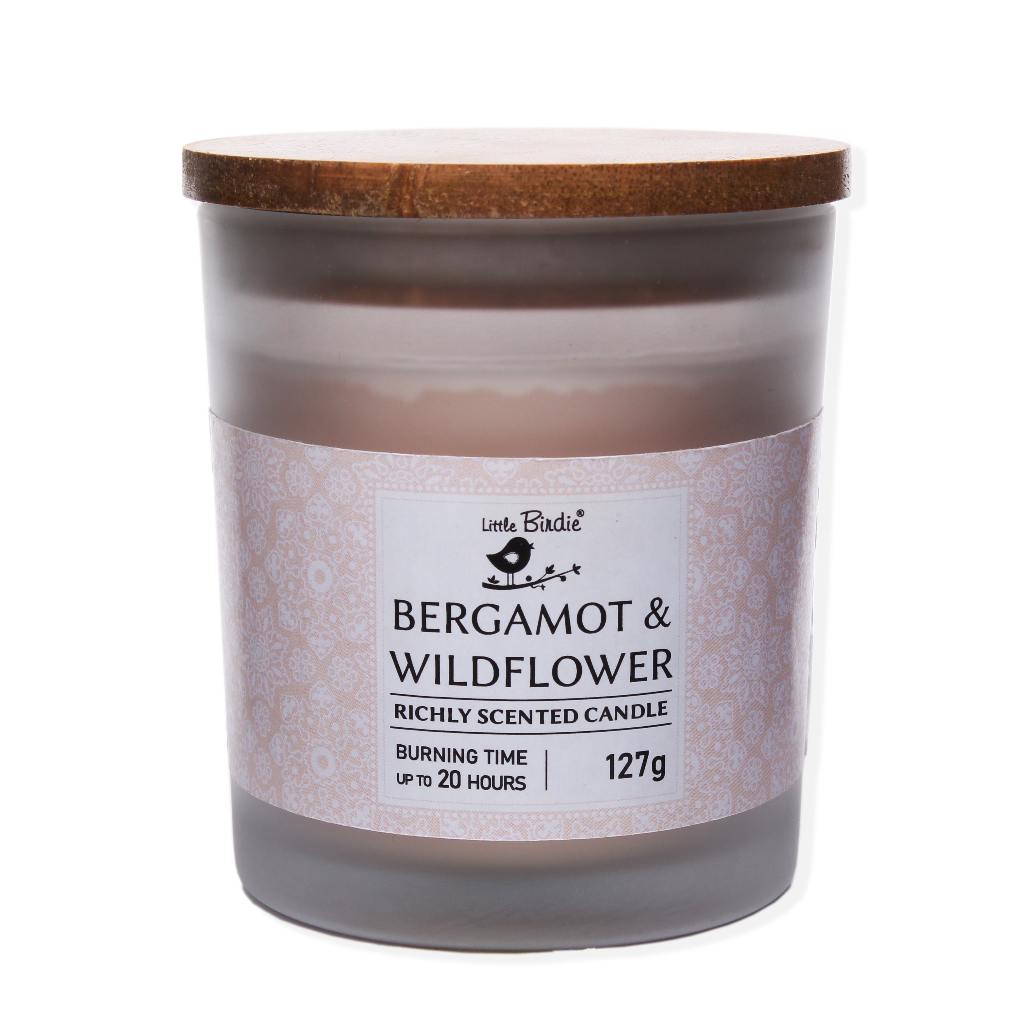 Scented Wax Glass Candle With Wooden Lid Bergamot & Wildflower (18 To 20 Hr Burning Time) 127Grm 1Pc