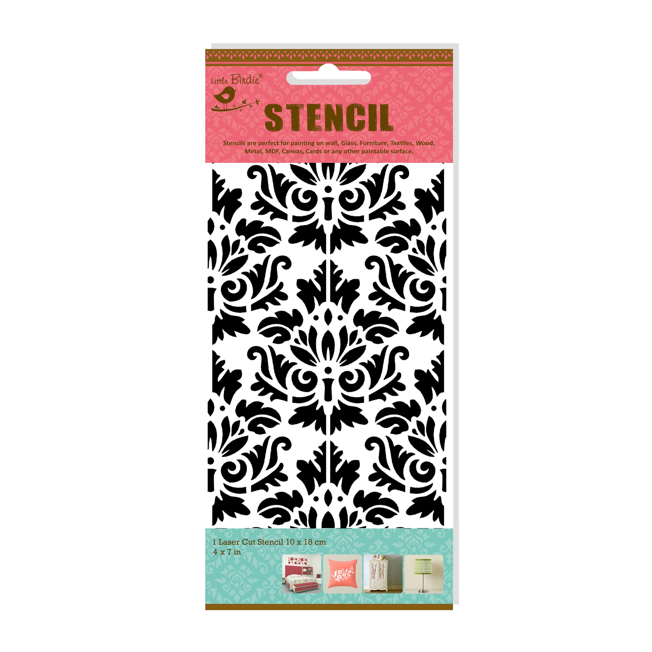 - This stencil has unlimited uses in interior design, craft, artwork. Create customized cushion covers, wall hangings, bags, paintings on glass panes, cupboards and more