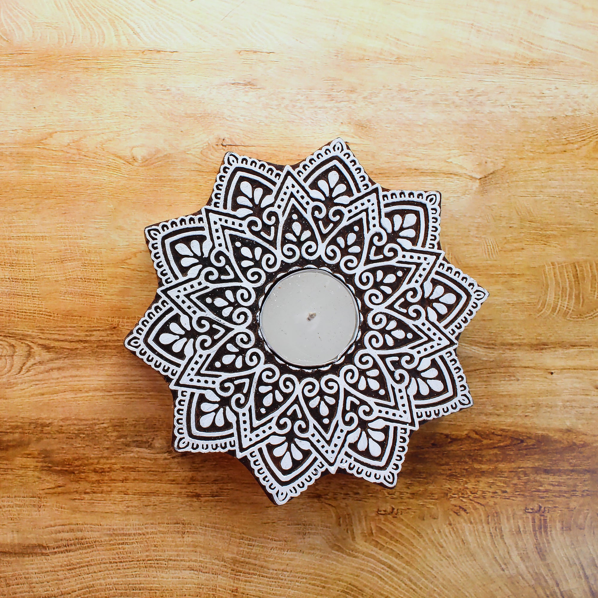 Wooden Printing Block & Candle Holder- Ethnic Bloom