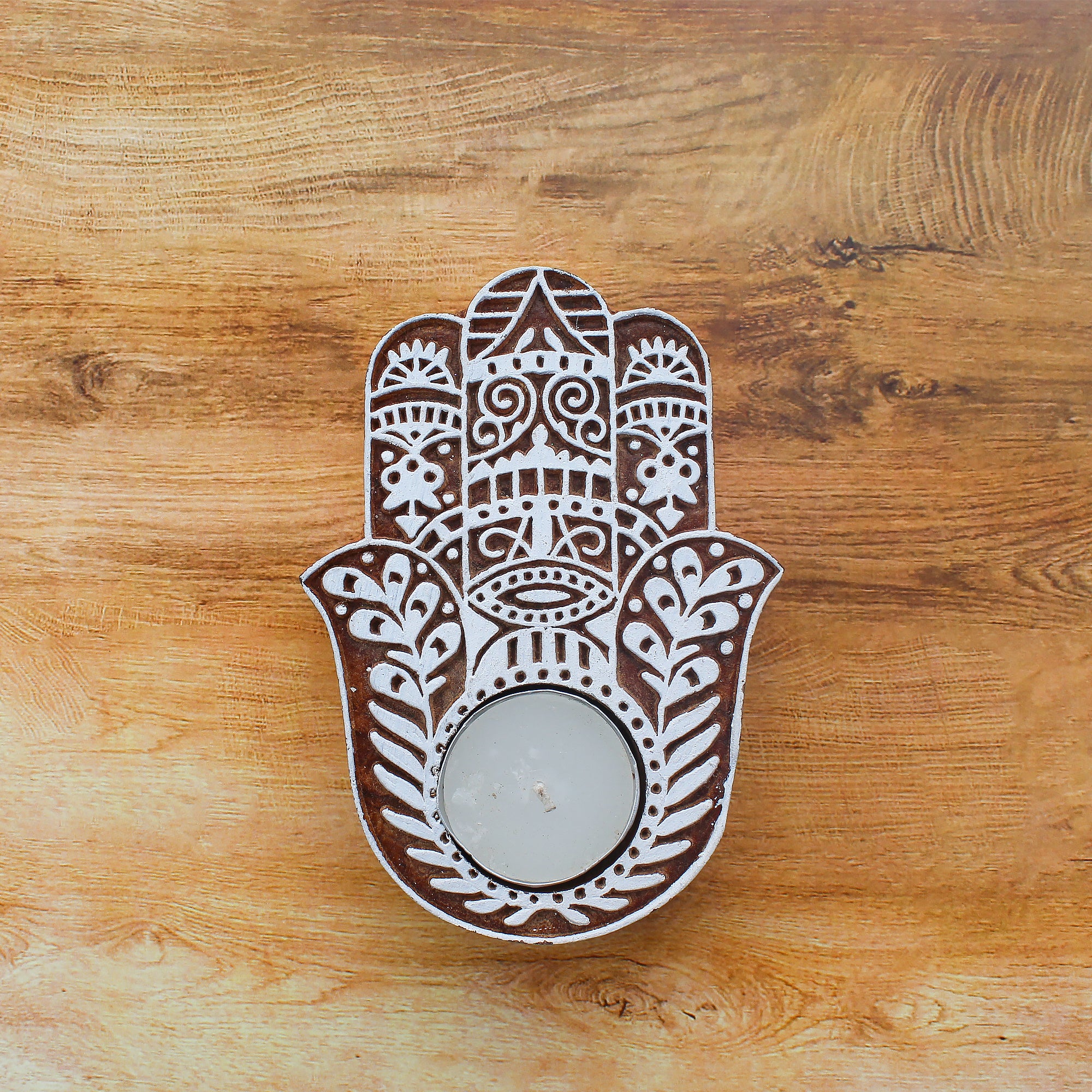 Wooden Printing Block & Candle Holder- Ornate Hand