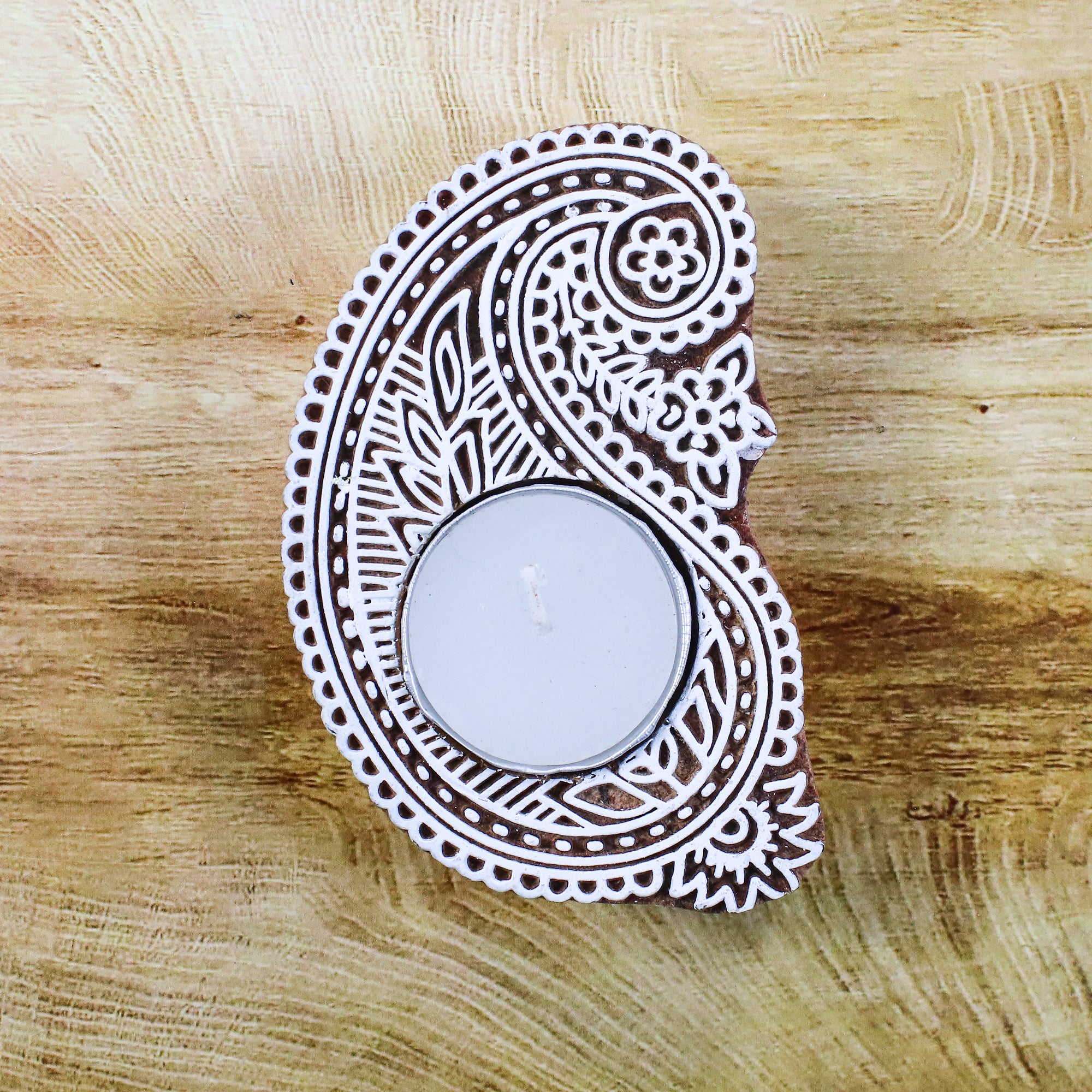 Wooden Printing Block & Candle Holder- Ornate Paisley
