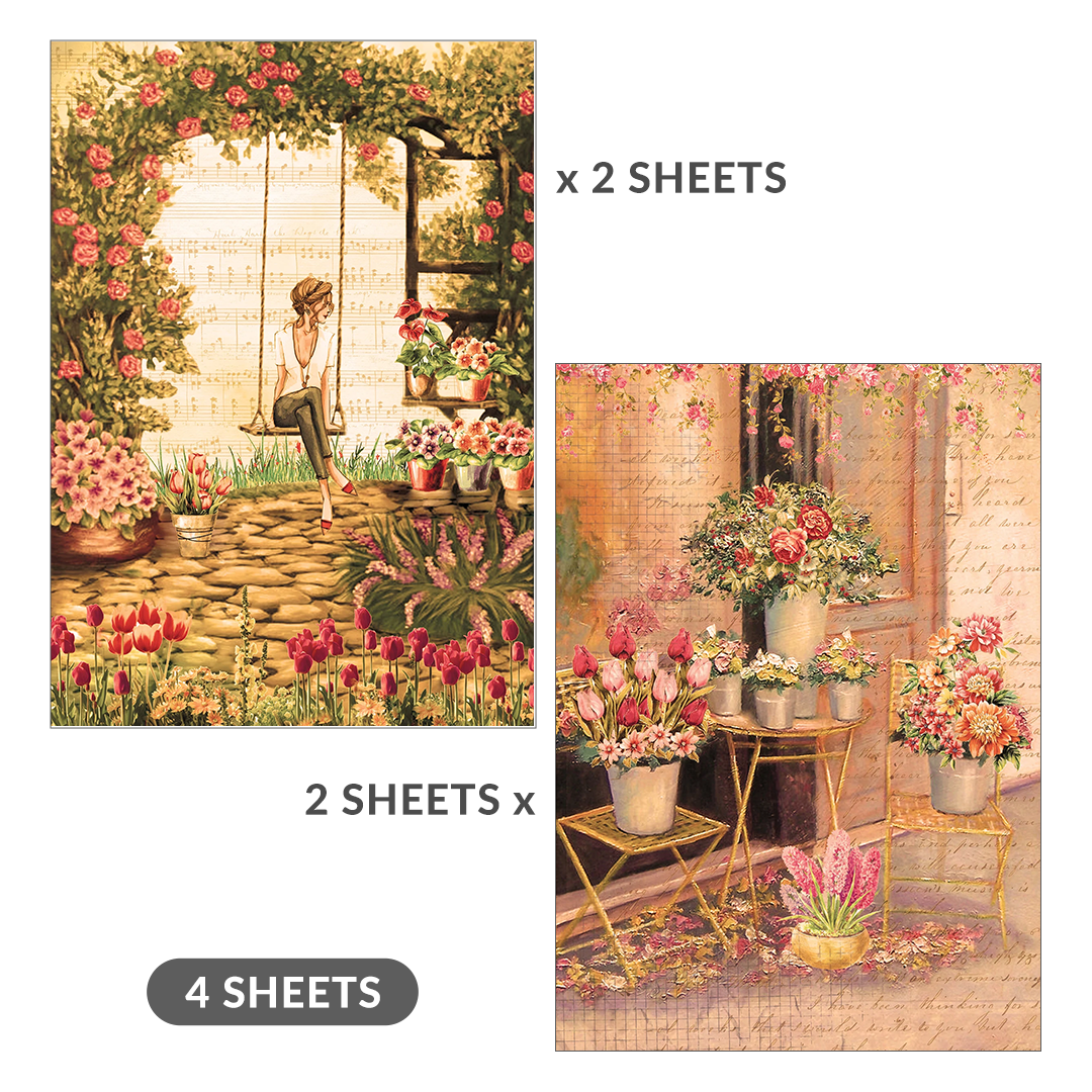 Decoupage Paper Cottage Garden A4 70GSM 2 Designs 4Sheets