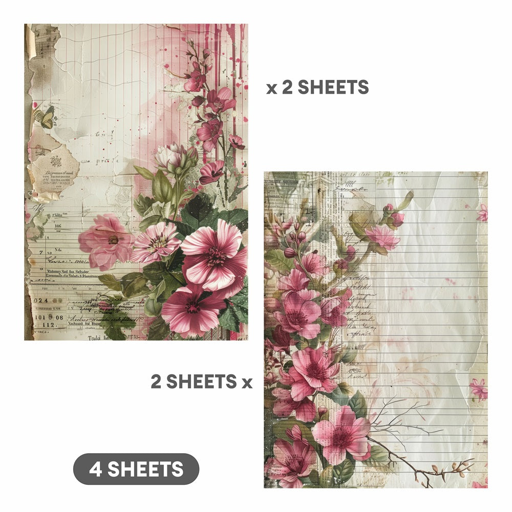 Decoupage Paper Rosy Wildflower 2Designs 70GSM A4 4Sheets