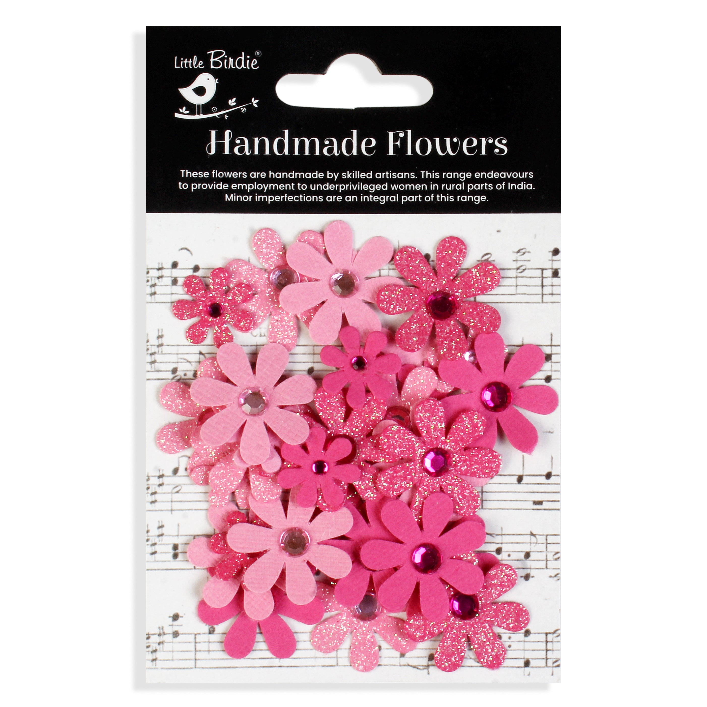 Handmade flowers Precious Pink Sparkle Florettes Approx 1.5 &2.5Cm 30Pc Pbci Lb