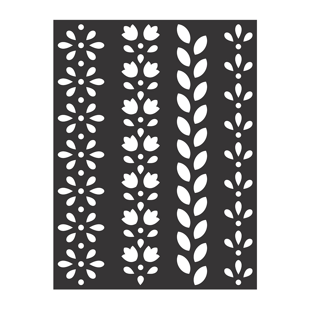 - This is a precise laser cut Stencil 7.3" X 9.7" featuring four different Floral Borders.