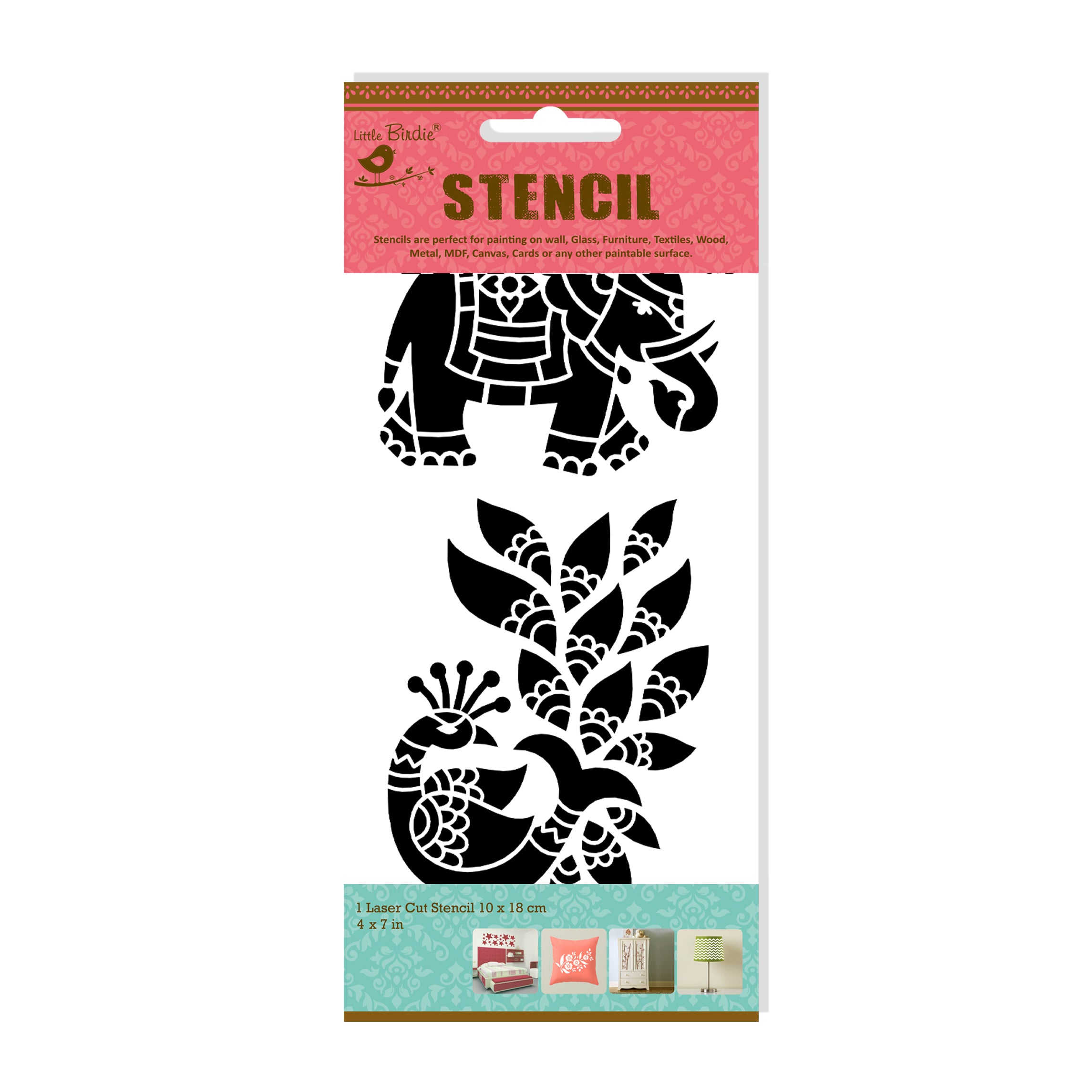 Stencil Peacock And Elephant 4 X7Inch 1Pc Pbci Lb