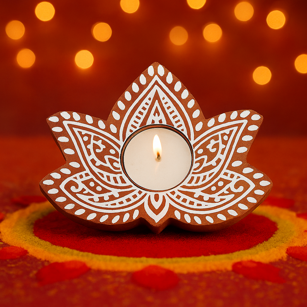 Heritage of India Pack of 3 Playing Cards & 4 Decorative Diyas 1 Set Box