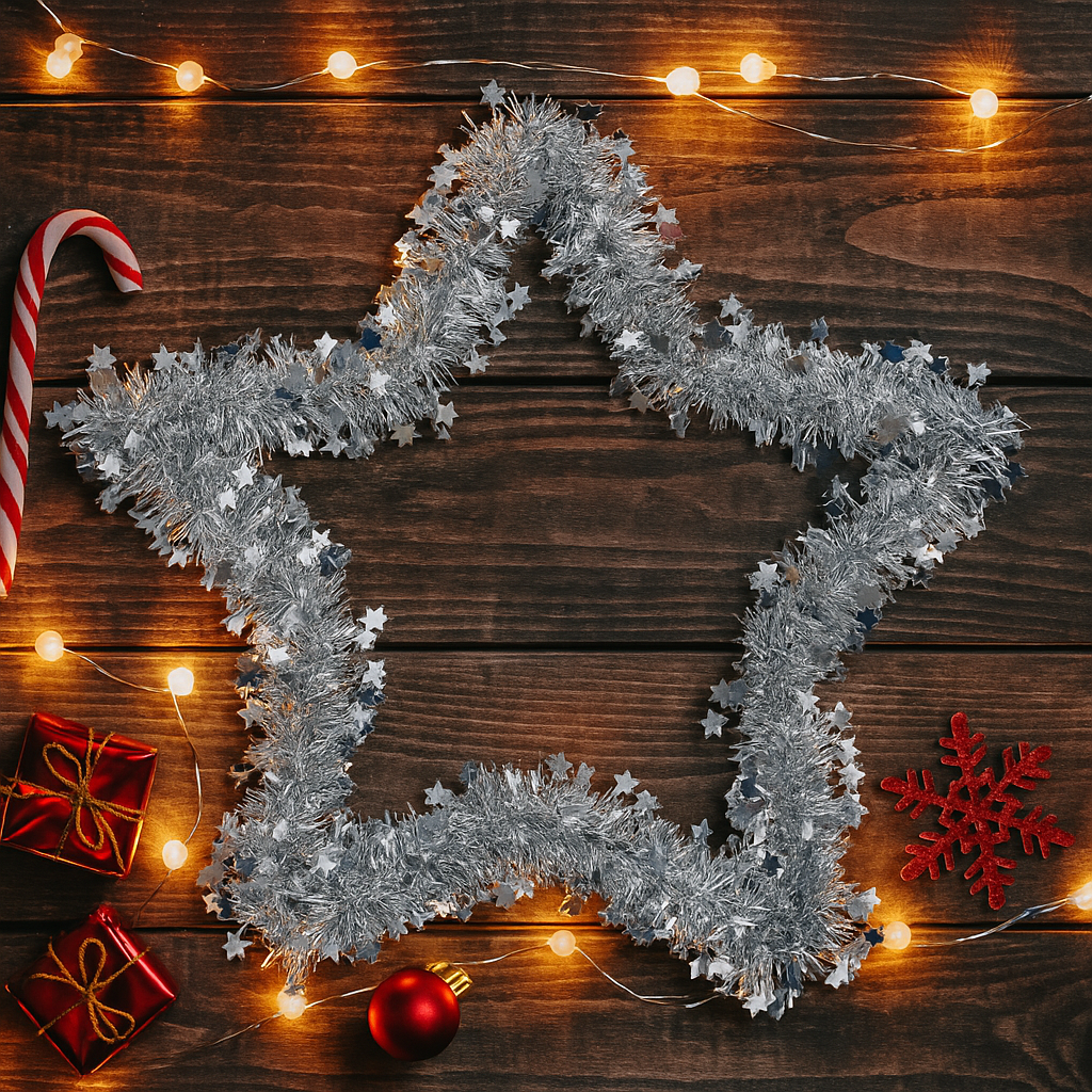 Tinsel Mini Bauble Plaque - Red & Green 23cm, 1pc